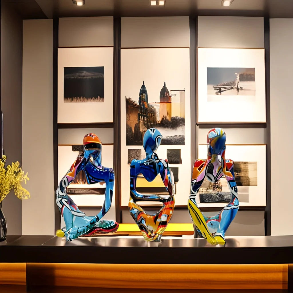 3-Piece Abstract Thinker Resin Statues – Modern Tabletop Decor
