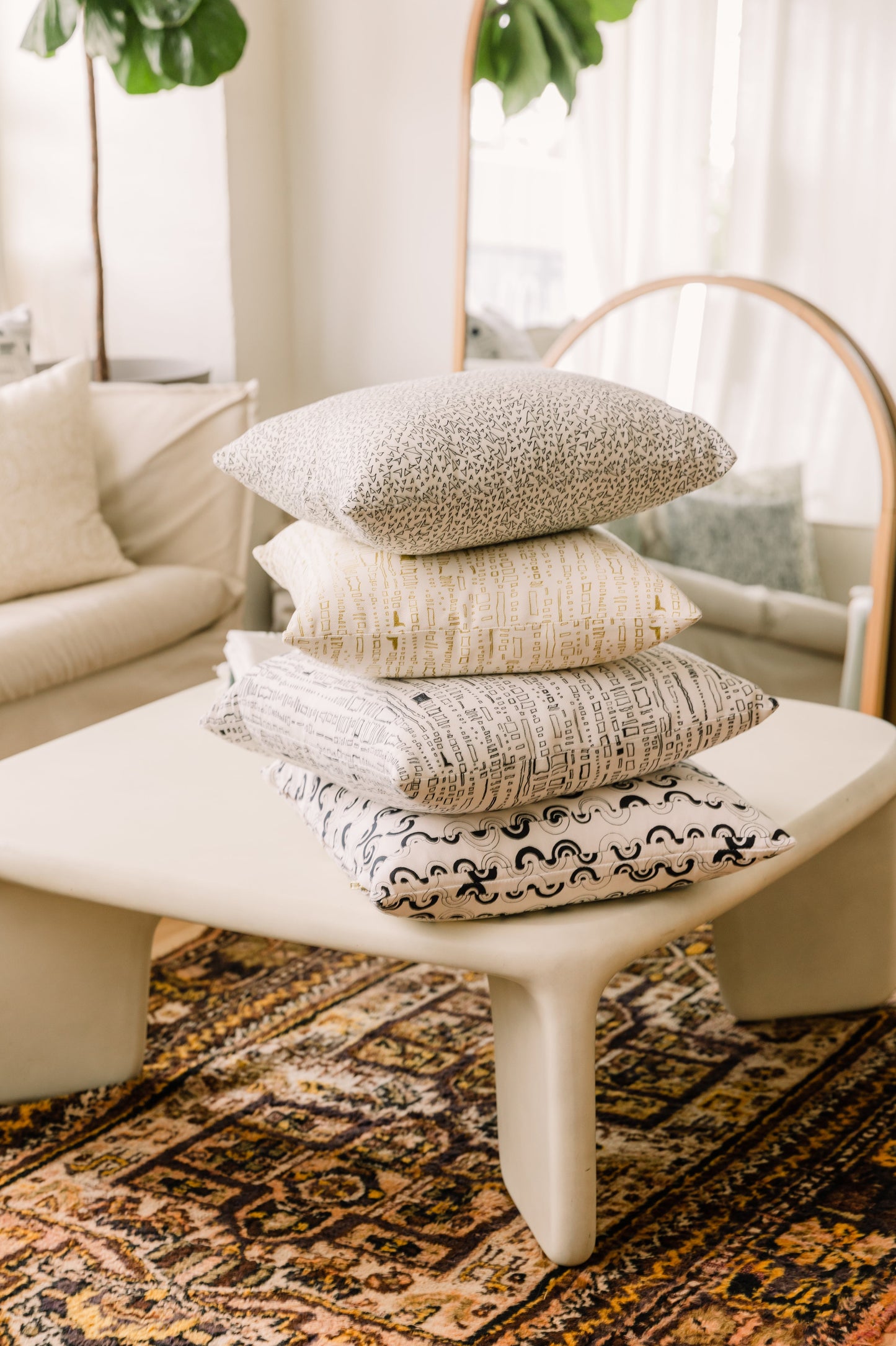 Crafted with care in the USA, the Basilone pillow is responsibly printed, cut, and sewn on a luxurious 55% linen and 45% cotton blend. The high-quality yarns sourced from Belgium ensure durability and a soft, inviting texture.