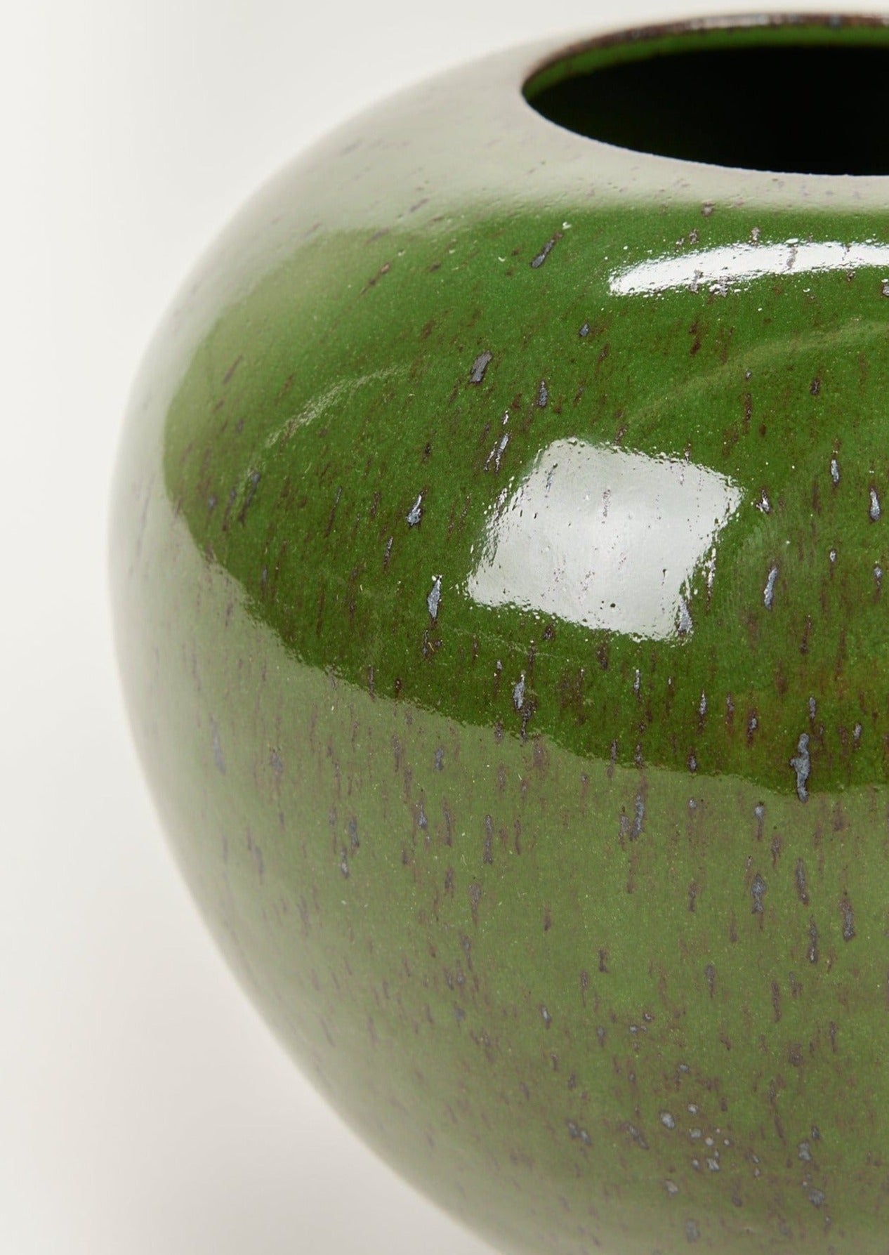Due to the handmade process, each vase is unique. There is variation in the tone caused by drips made while glazing and the clay showing through the glaze. No two vases are exactly alike.