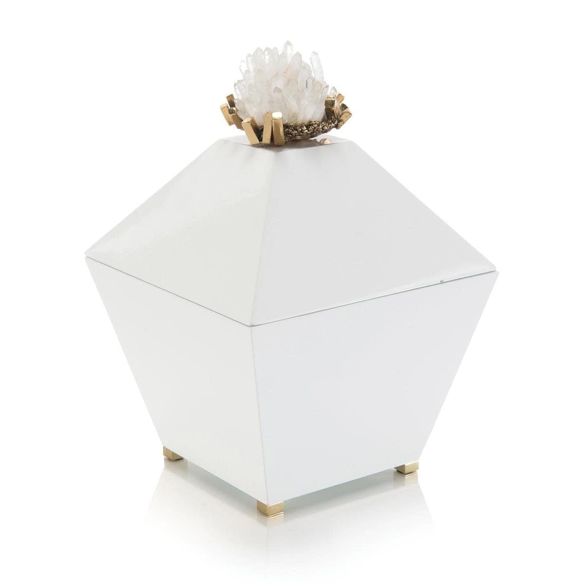 John-Richard is renowned for its timeless elegance and exceptional craftsmanship, and this piece is no exception. The combination of natural crystal quartz and sleek brass detailing creates a striking contrast, while the white enamel box adds a modern touch. Whether placed on a mantel, coffee table, or bookshelf, this accent piece is sure to draw admiration and elevate your interior decor.