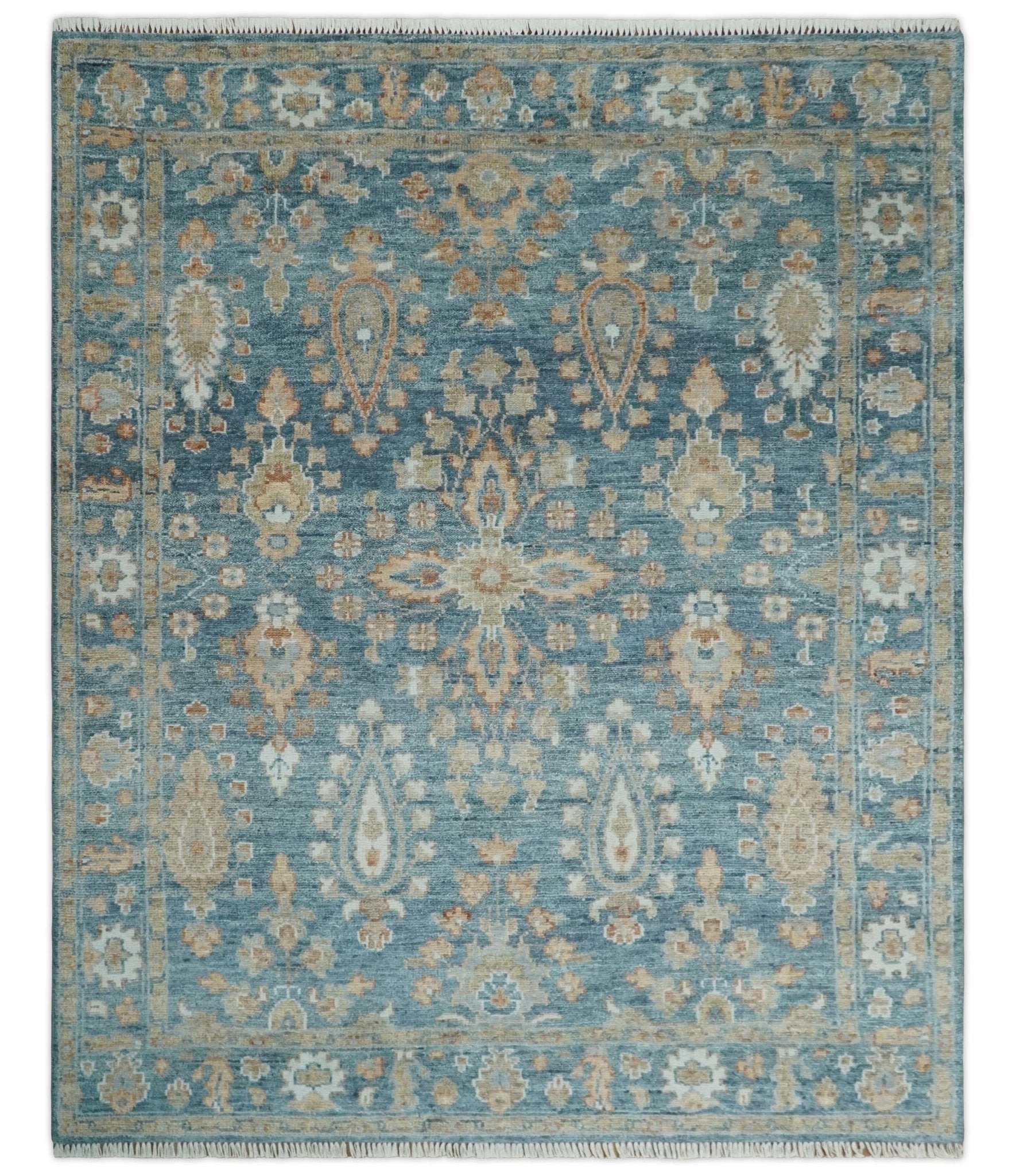 Custom Made Antique Hand Knotted Blue and Beige Traditional Oushak Wool Area Rug
