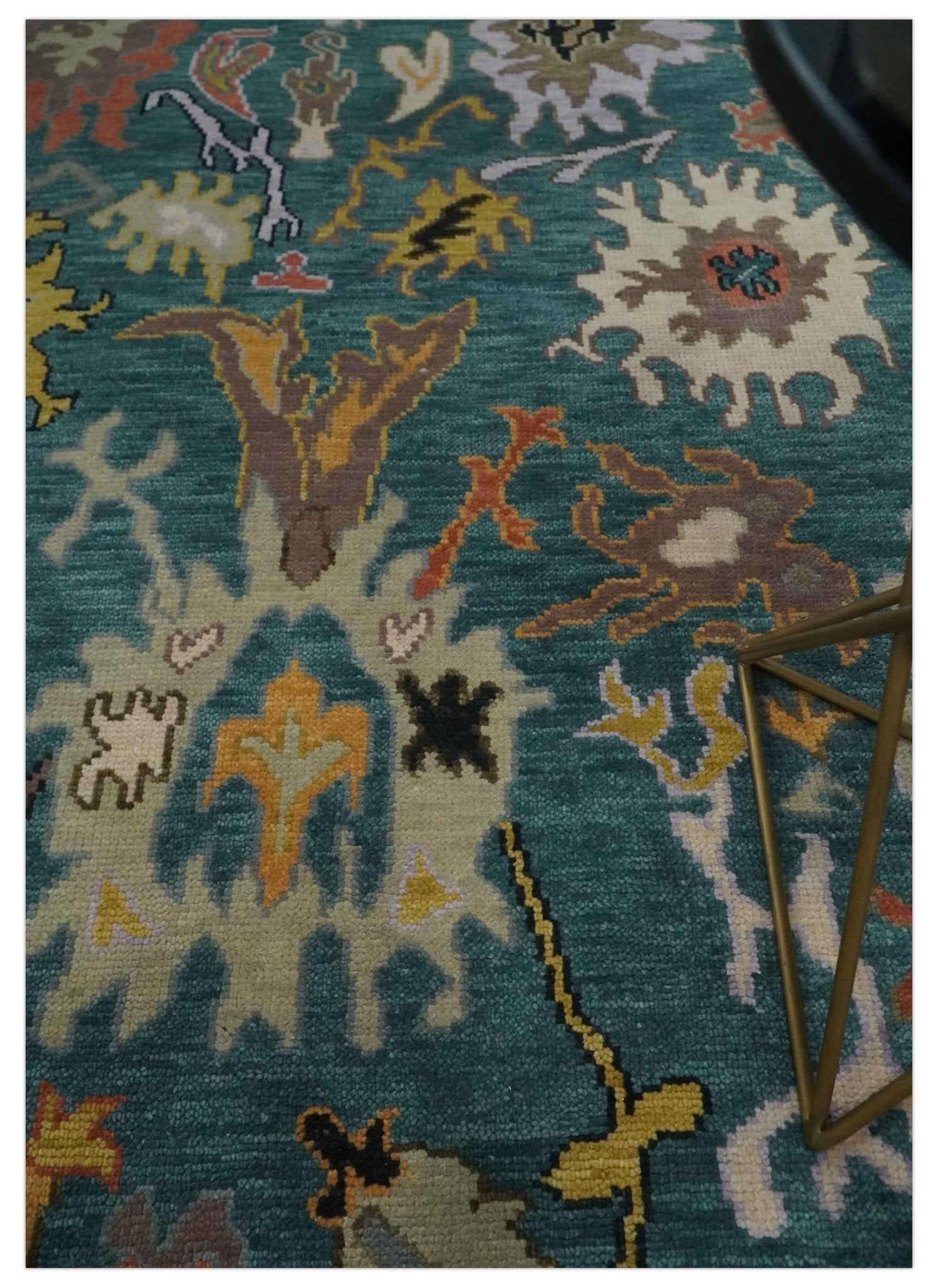Beautifully crafted from wool, this Vintage look is Vibrant and Colorful Size Oushak Area Rug will lend an instant vintage charm to any space. The rug features teal and olive colors with a vibrant, colorful design that is sure to catch the eye. Perfect for any room in the home, this multi-sized area rug is sure to make a statement.