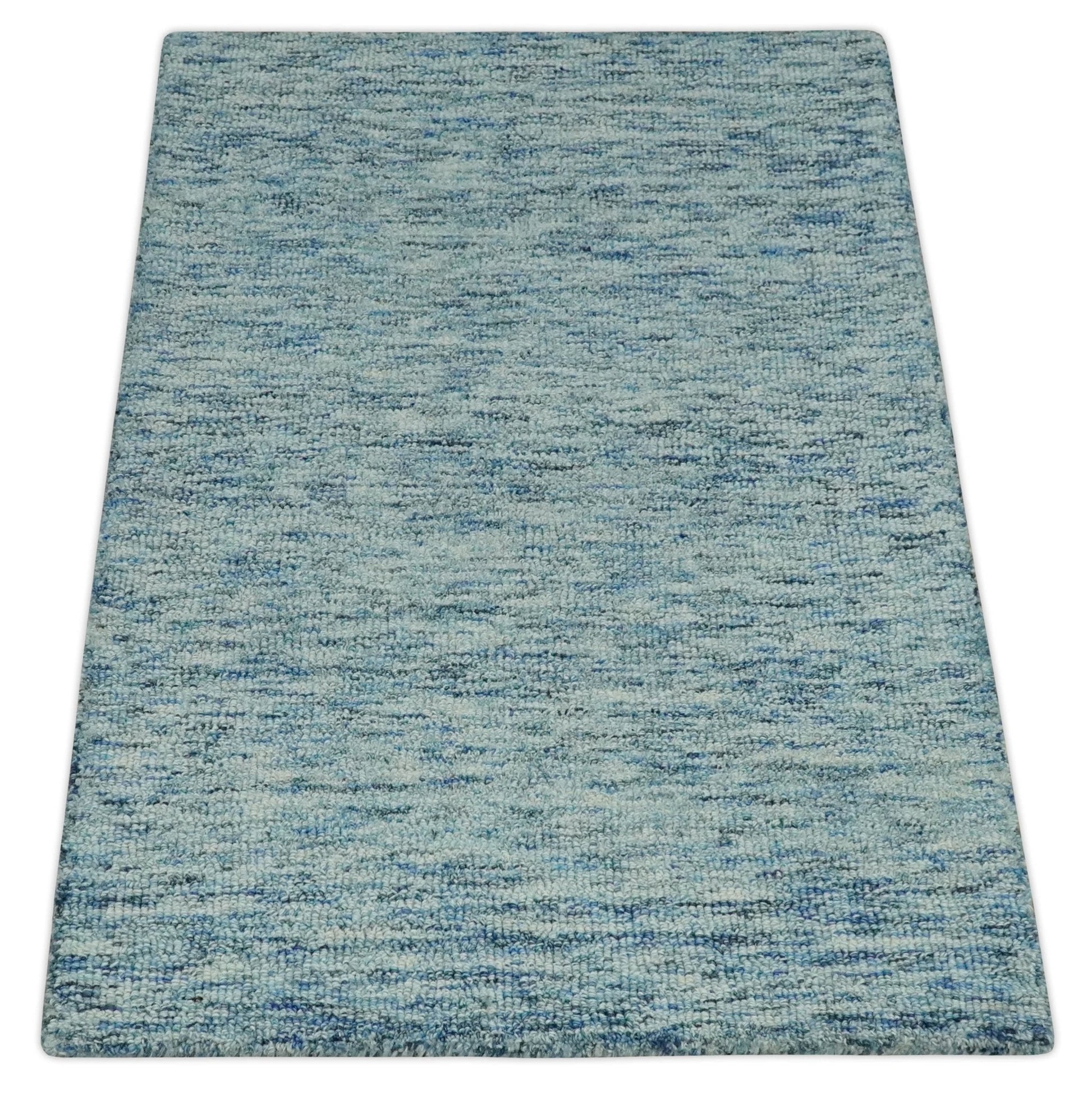 Custom Made Blue and Ivory Shaded Solid Wool Hand Woven Layering Area Rug