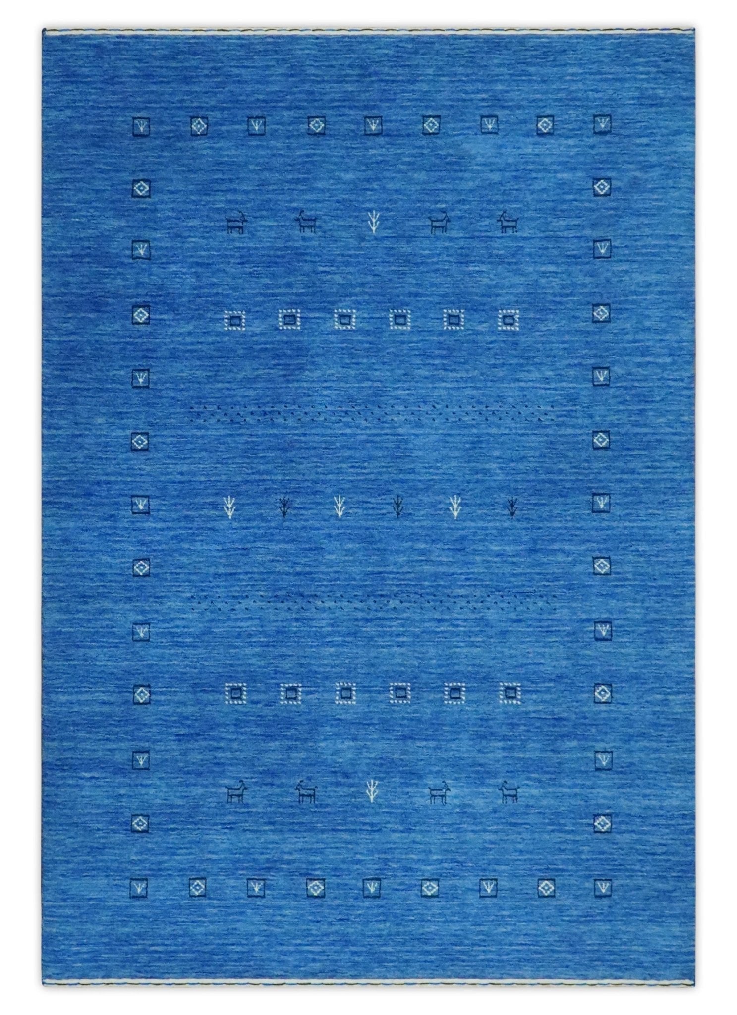 Custom Made Blue and Ivory Stripes Design Hand loom wool Area Rug