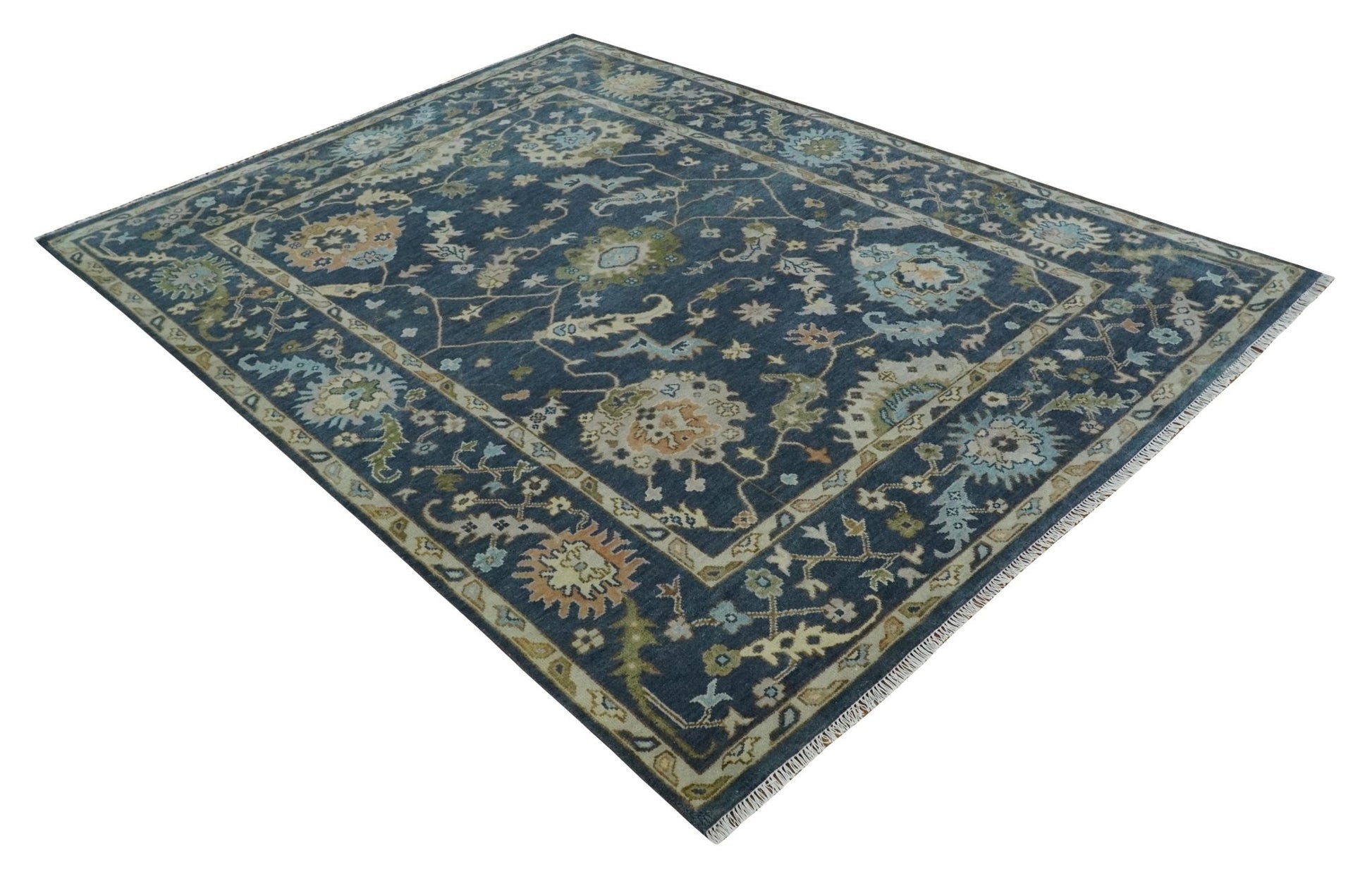 Custom Made Blue, Beige and Green Multi size Hand knotted Traditional Oushak Wool Area Rug