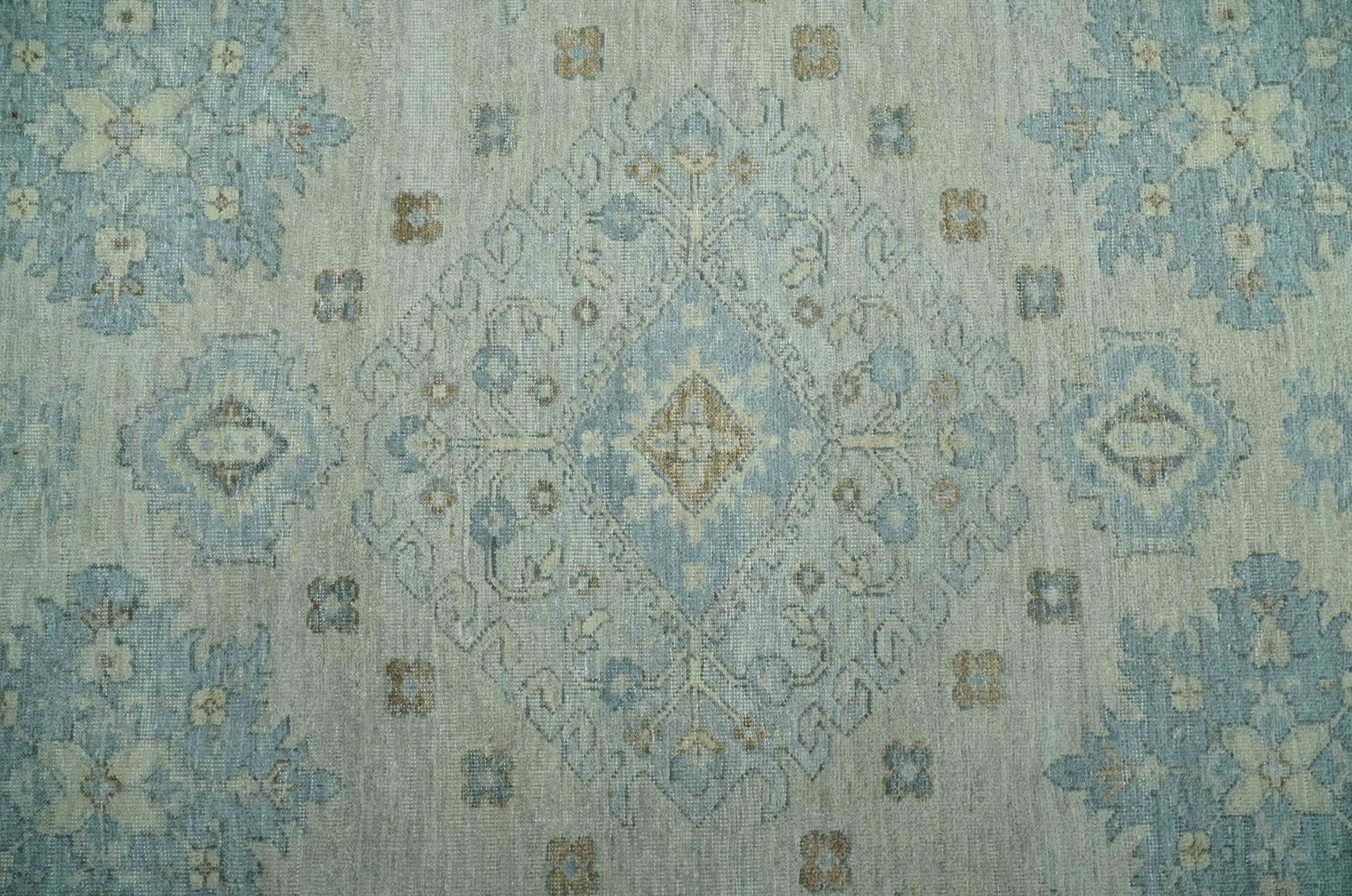 Custom Made Distressed Finished Beige and Gray Traditional mamluk design Low Pile wool Rug