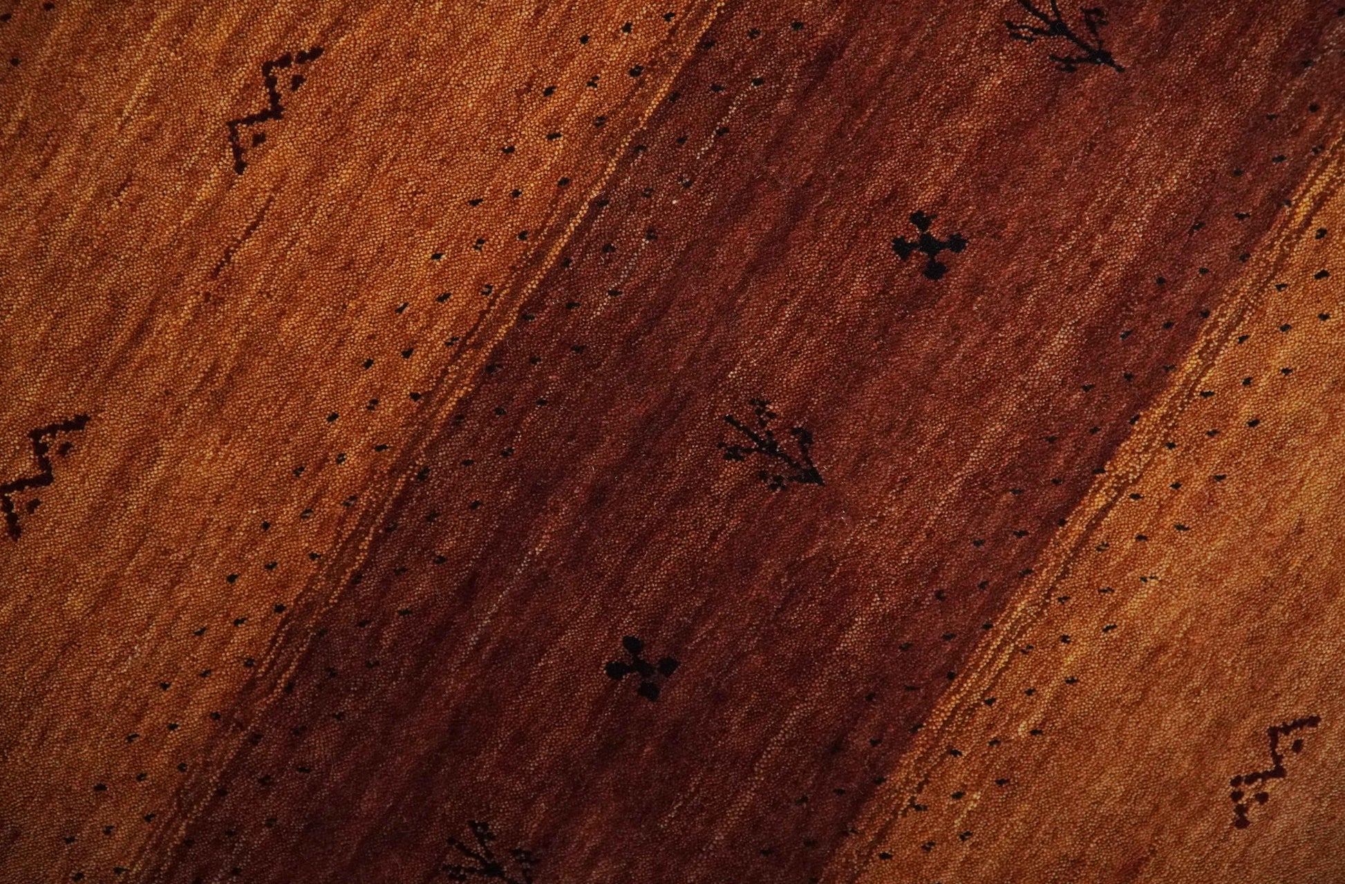 Expertly handcrafted with a unique rust and brown color palette, this wool area rug features a striking geometrical stripes design. Made using a traditional handloom, this multi-size rug adds a touch of elegance to any room while also providing durability and long-lasting quality.