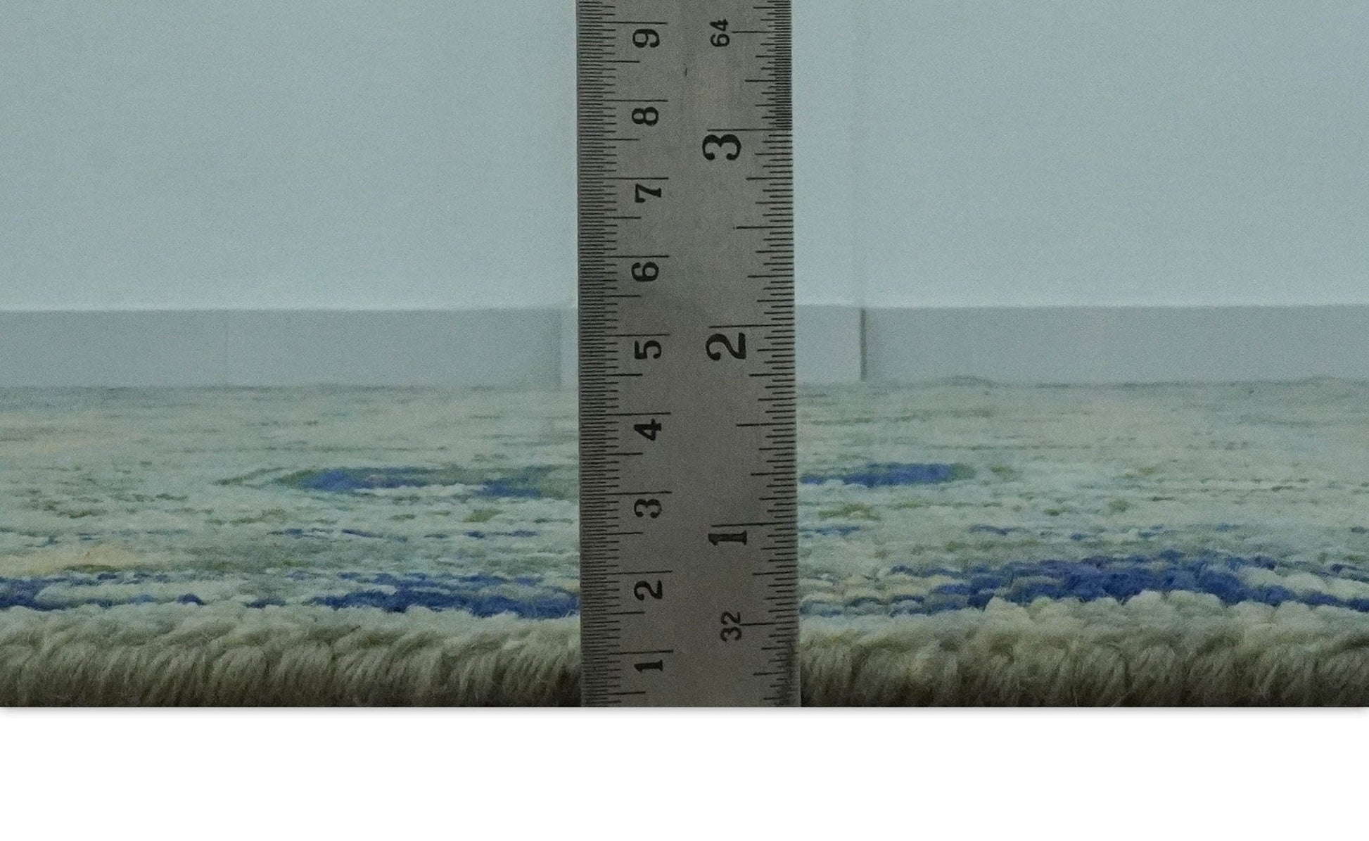 Expertly crafted and one-of-a-kind, this hand-knotted traditional Oushak wool area rug will add a touch of elegance to any room. With a custom design in various shades of green, blue, and mustard, this rug is a unique and luxurious addition to your home decor.