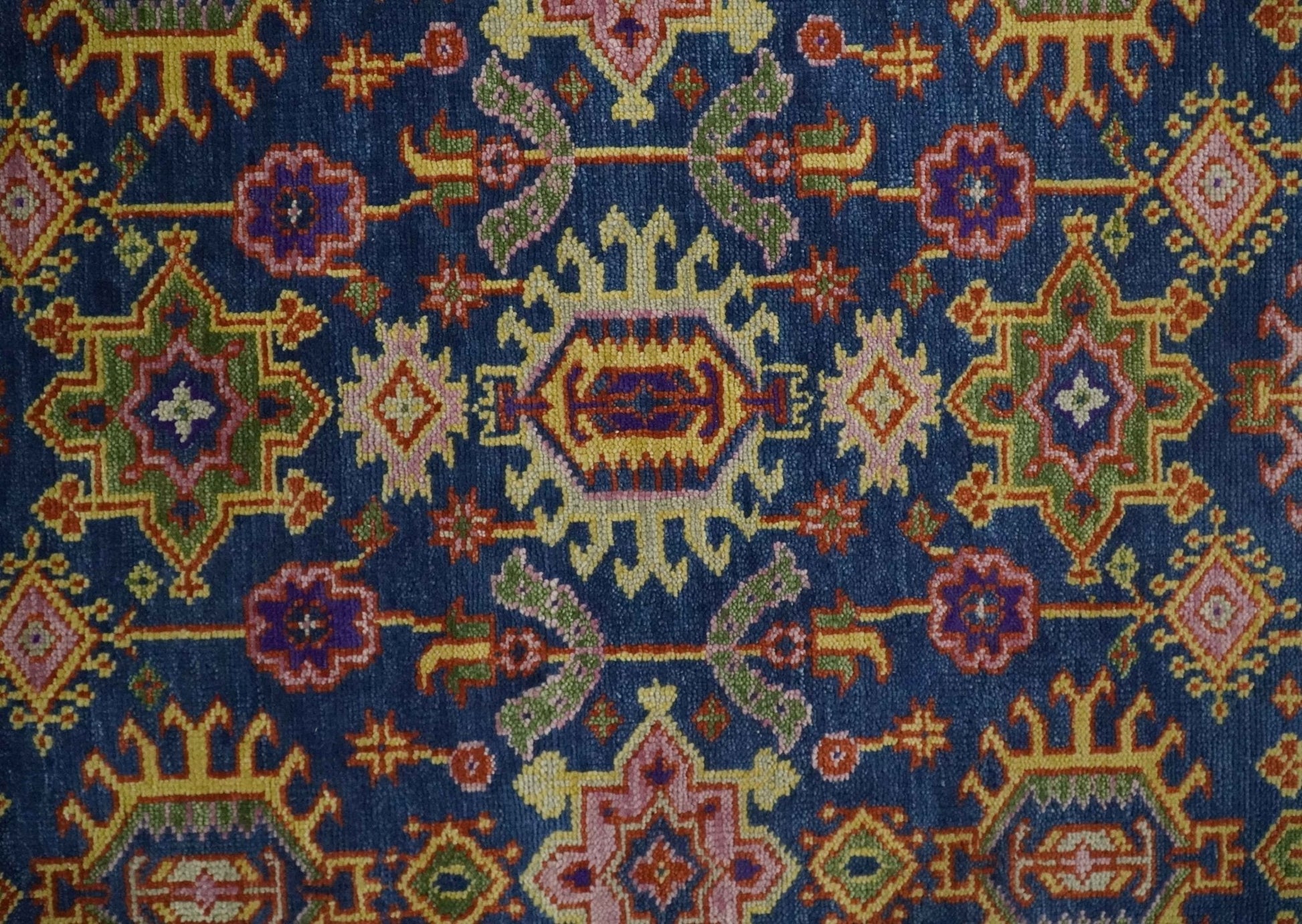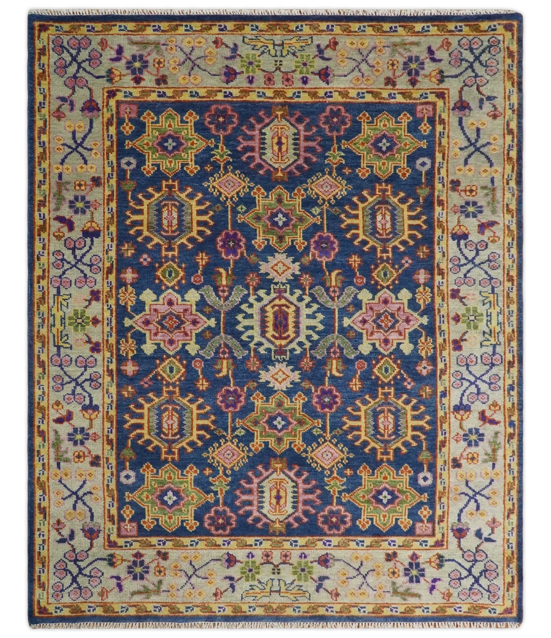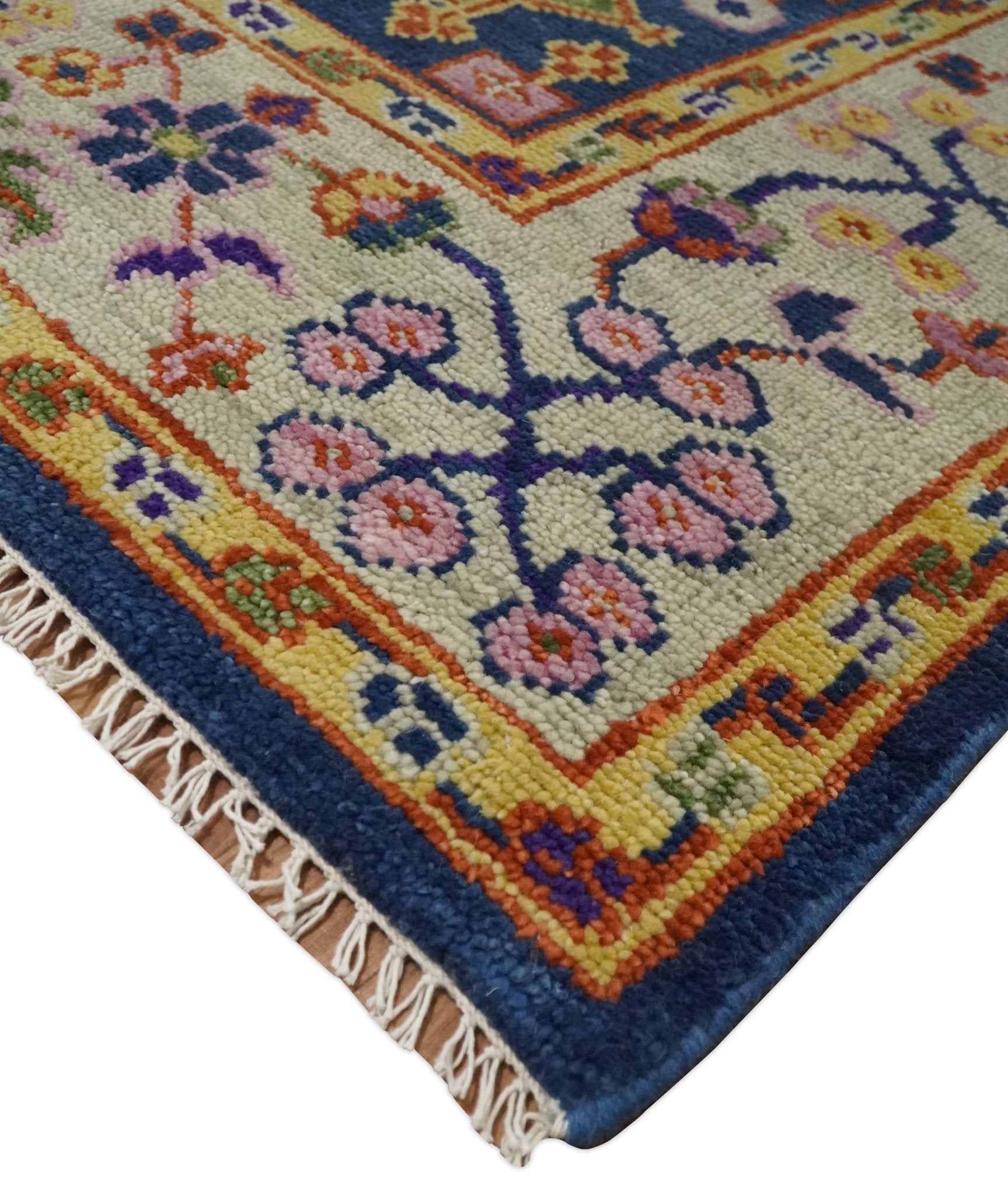 Custom Made Hand Knotted Blue, Gold and Beige Oriental Oushak wool Area Rug