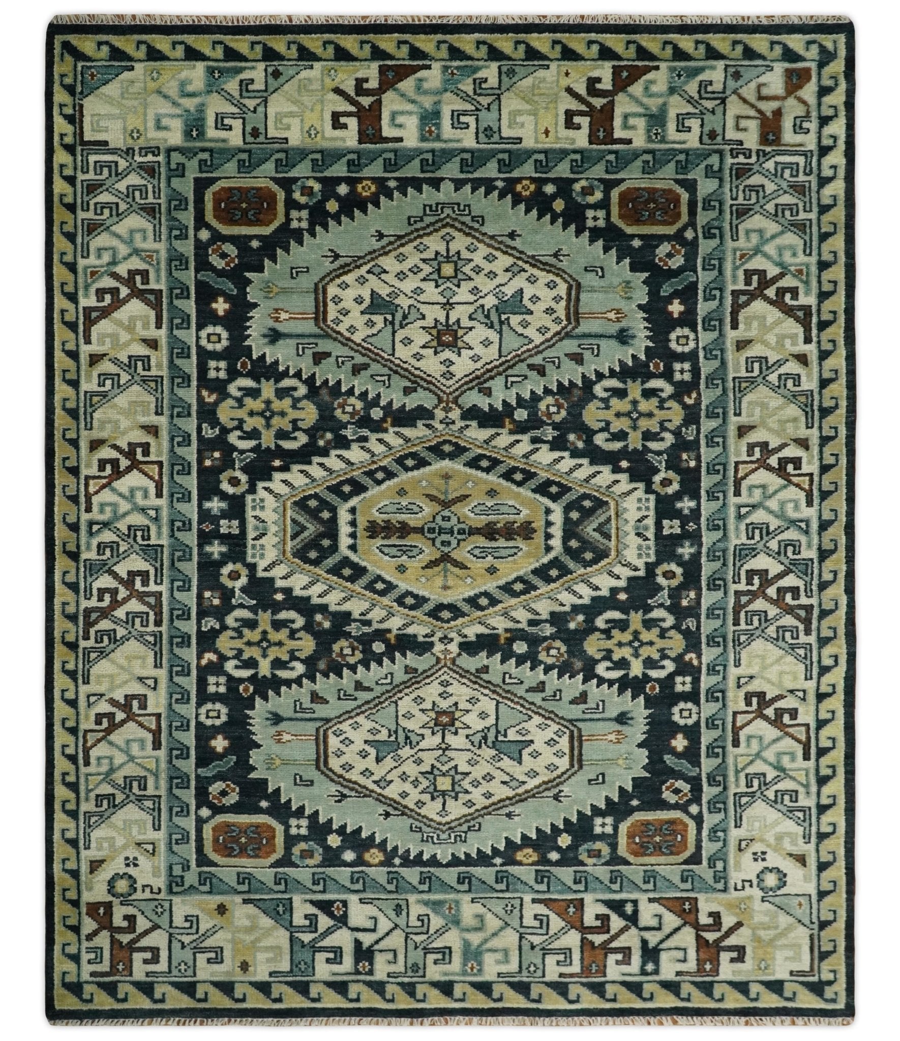 This Hand-Knotted Rug has been Made with Handspun Wool. The beautiful colors of the rug carry a legacy of the heirloom rug. The traditional design of the rug completes your space without making it look busy. Hand-Knotted rugs are durable and can last for decades if treated right.