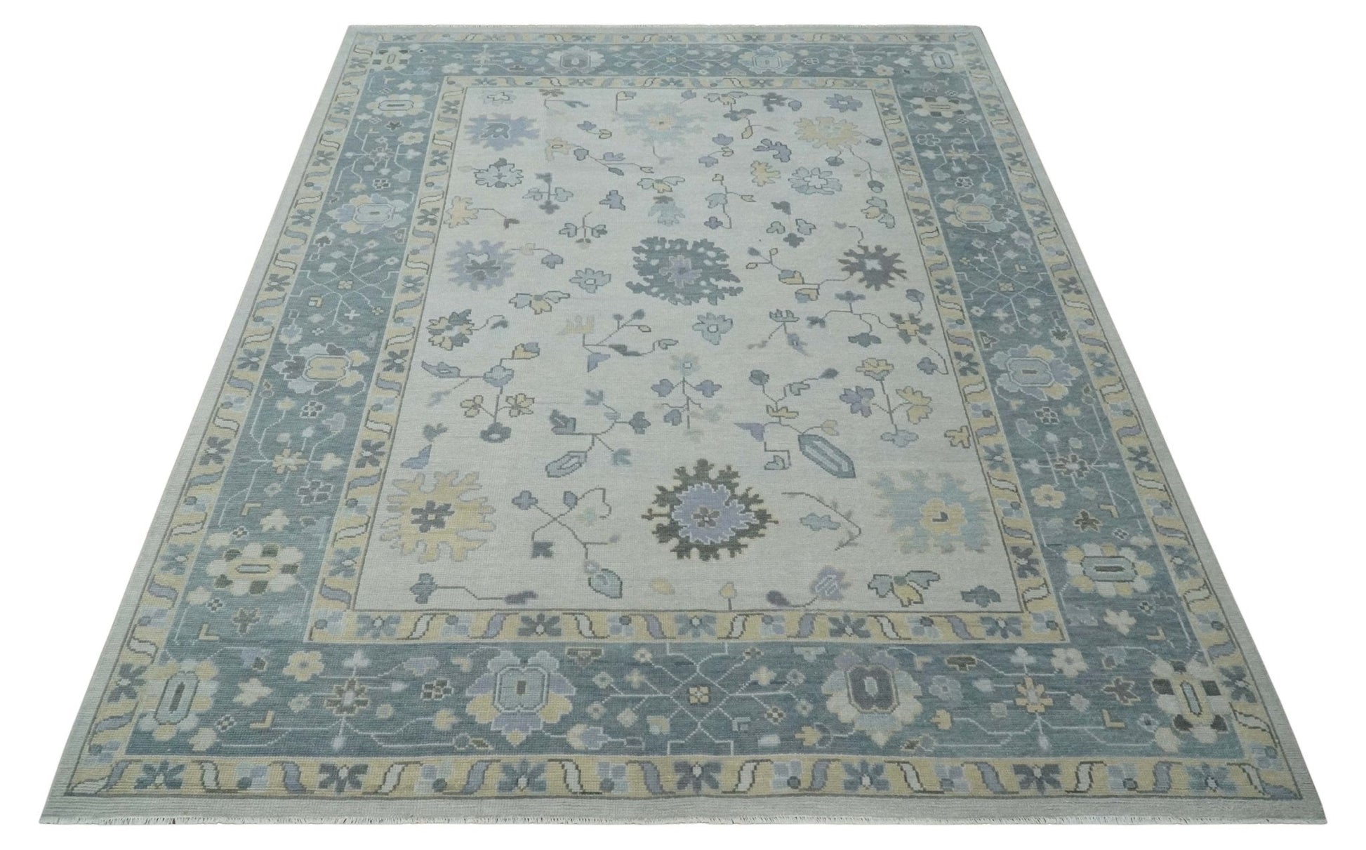 Custom Made Hand Knotted Silver, Blue and Beige Traditional Oushak Wool Area Rug