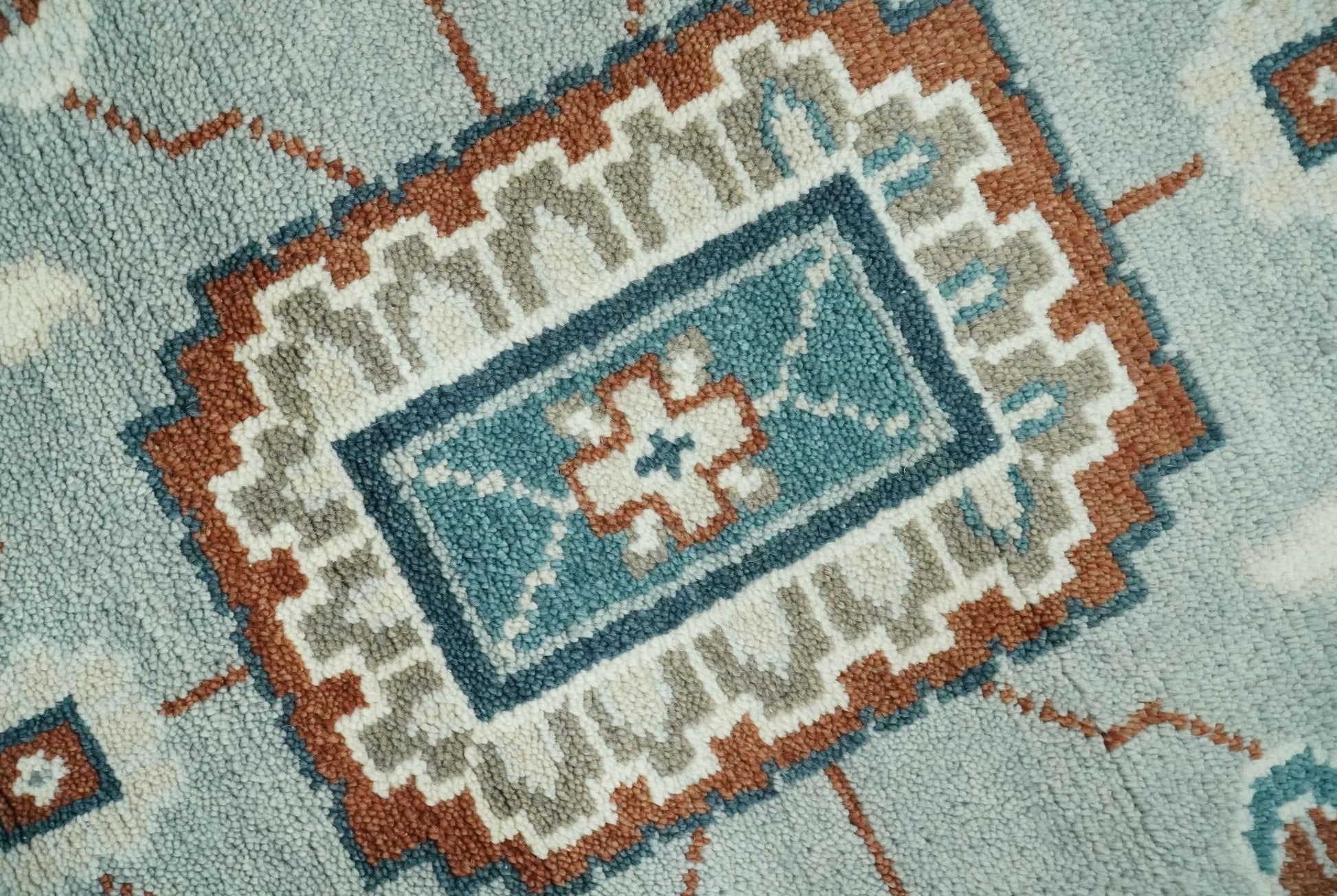 Expertly hand-knotted from soft, high-quality wool, this Custom Made area rug showcases a stunning blend of silver, teal, ivory and Brown tones. Its traditional Oriental Oushak design adds a touch of elegance to any space. Experience the luxury and durability of a personalized, hand-knotted rug.