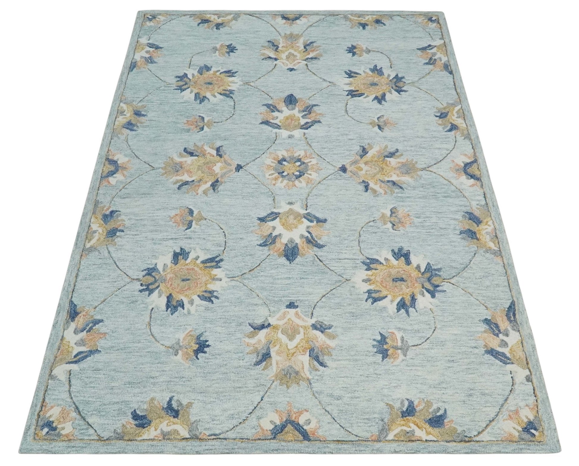 Create an antique-inspired look in your living space with this hand-tufted, multi-sized rug. Featuring shades of gray, peach, and blue with a traditional floral pattern, this rug is the perfect addition to any living room or bedroom.