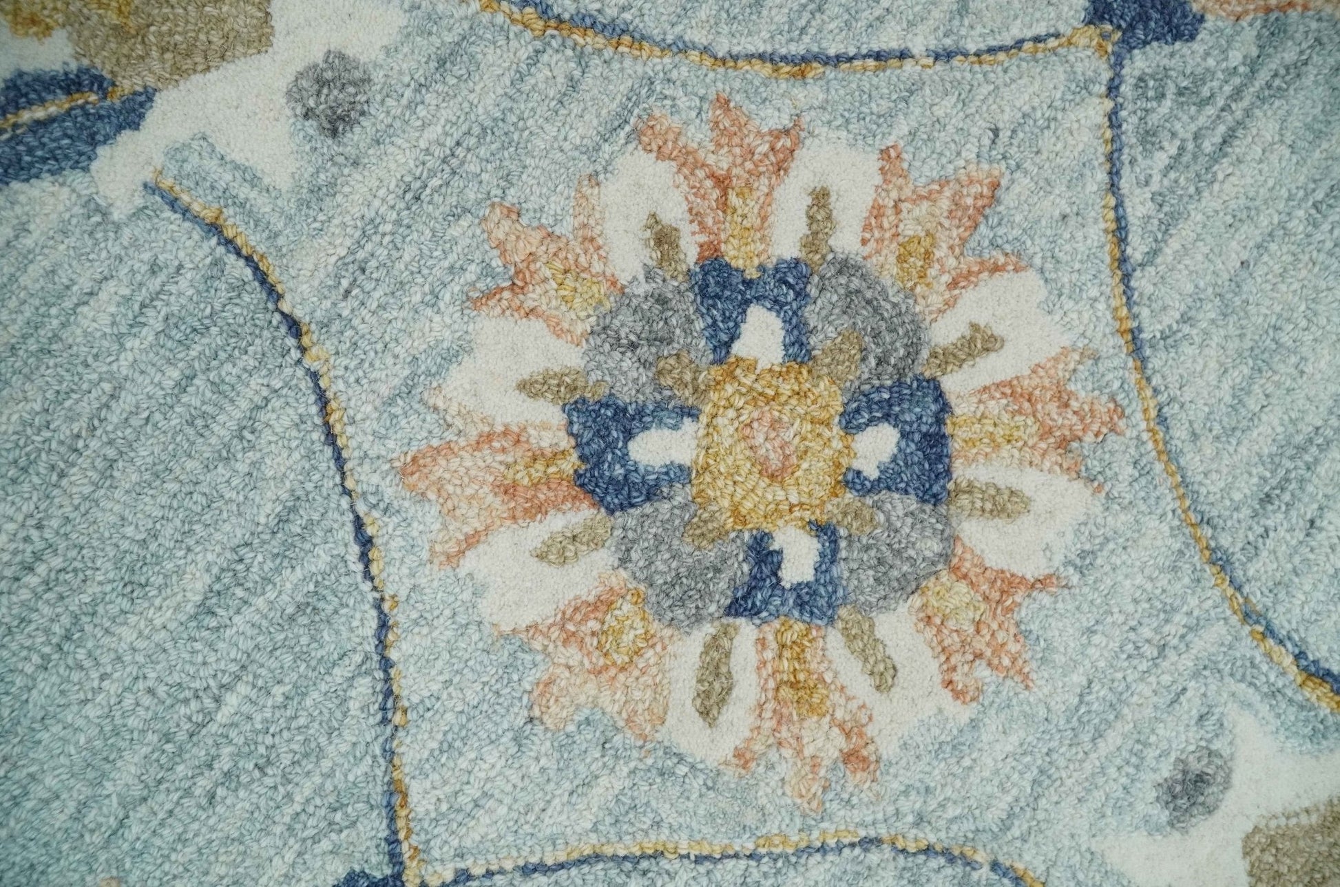 Custom Made Hand Tufted Gray, Peach and Blue Traditional Floral Antique Style Rug