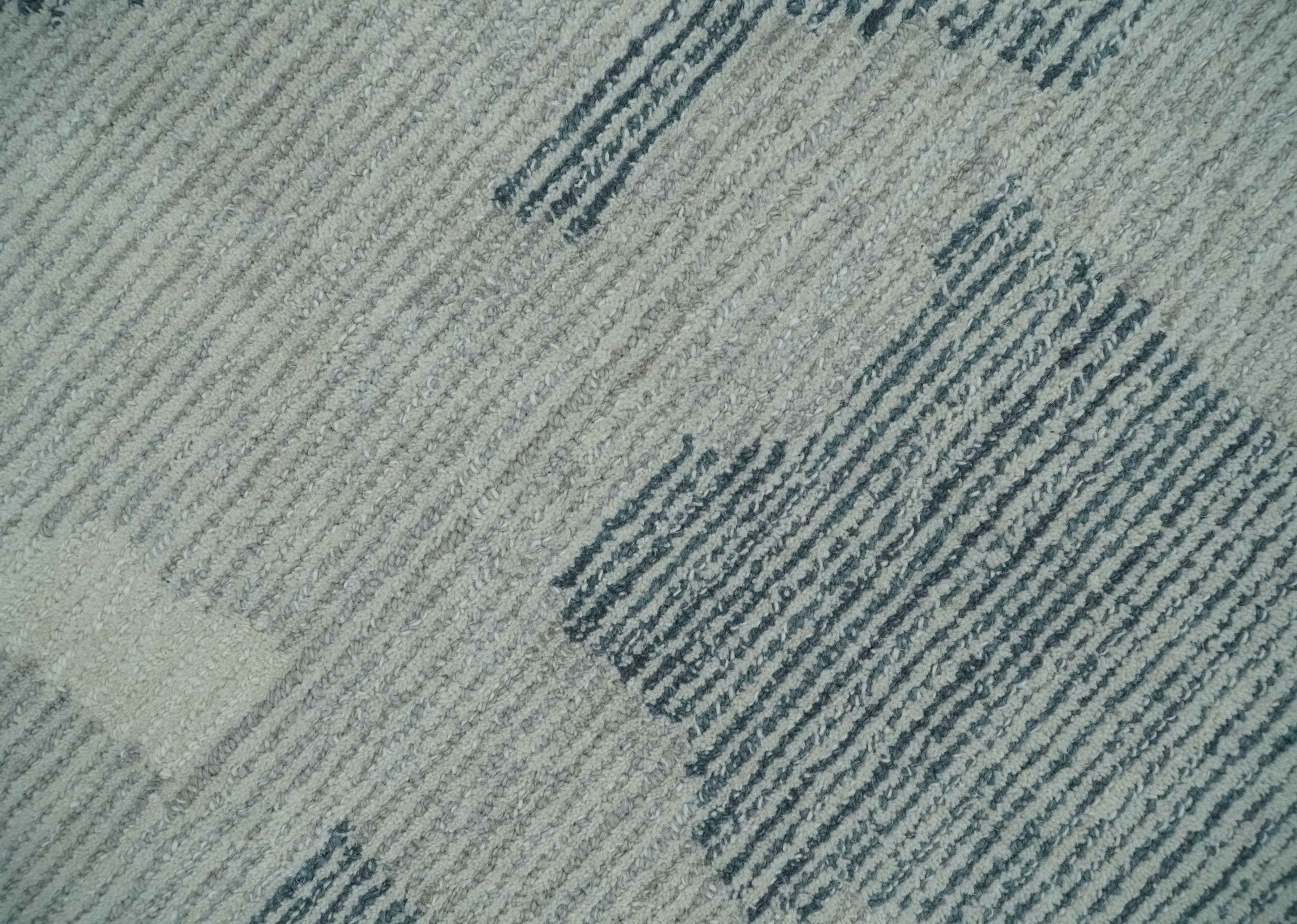 Custom Made Hand Tufted Ivory, Silver, Gray and Charcoal Modern Abstract Design Rug
