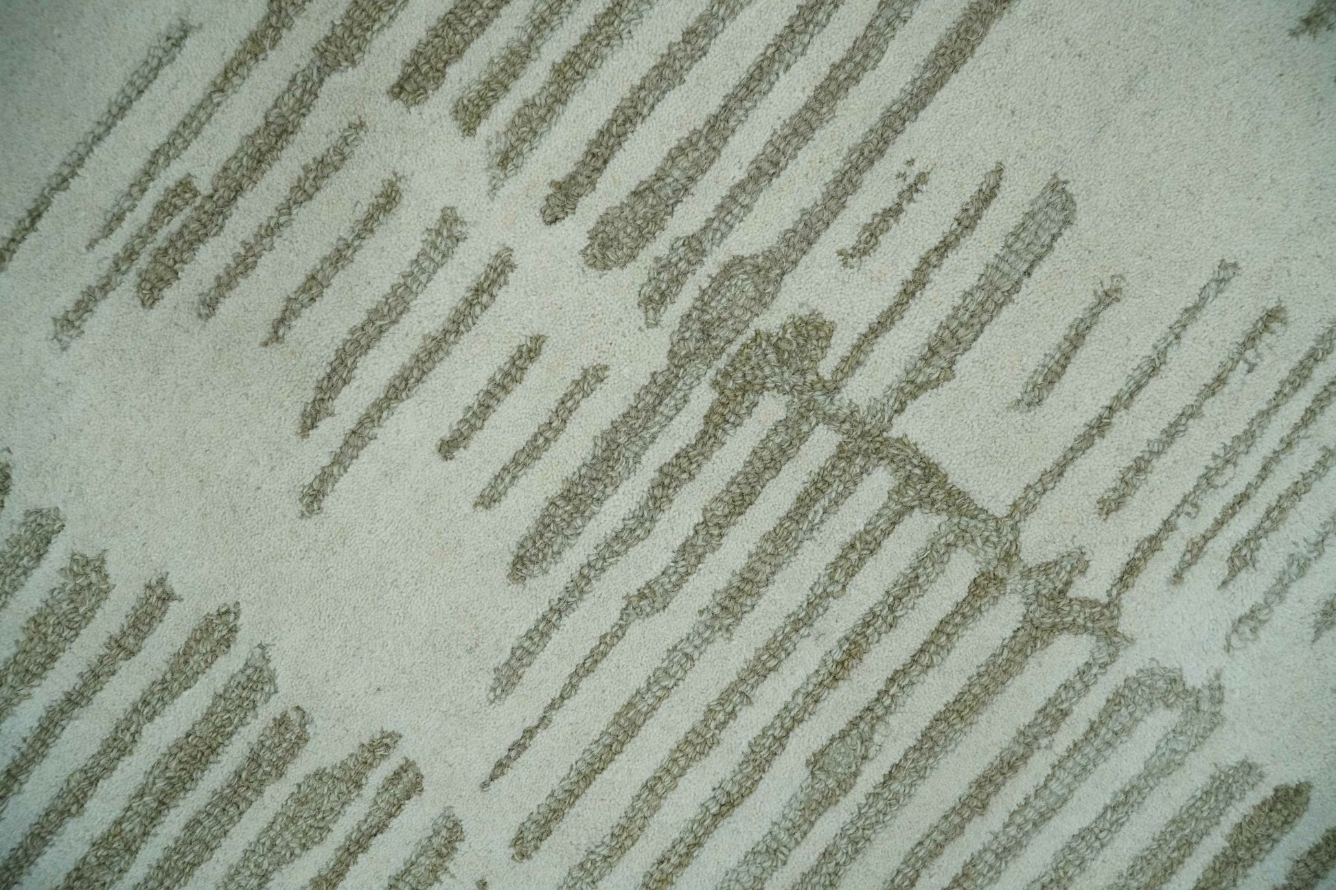 Custom Made Ivory and Olive Modern Stripes Design Hand Tufted wool Area Rug, Kids, Living Room and Bedroom Rug