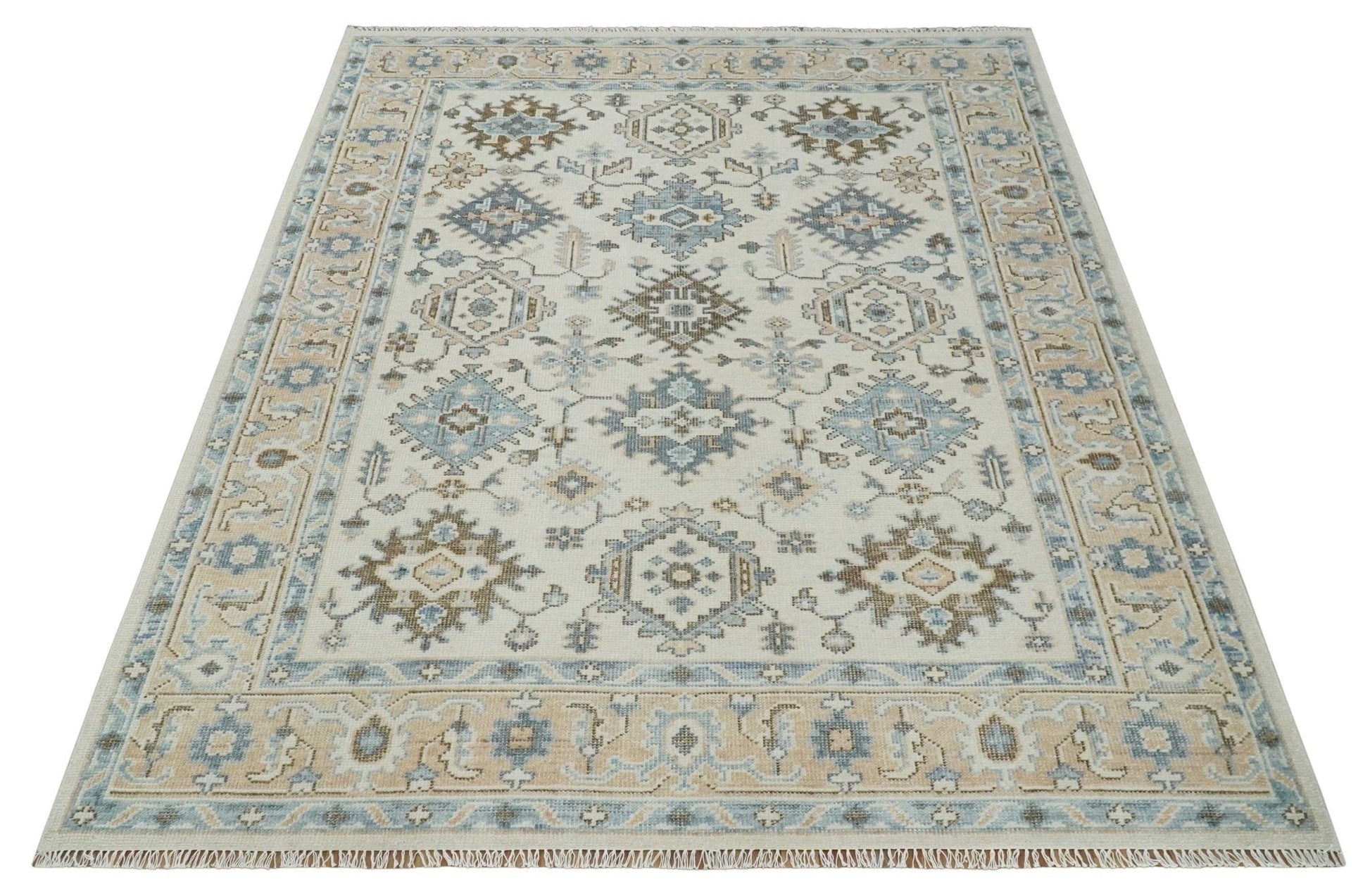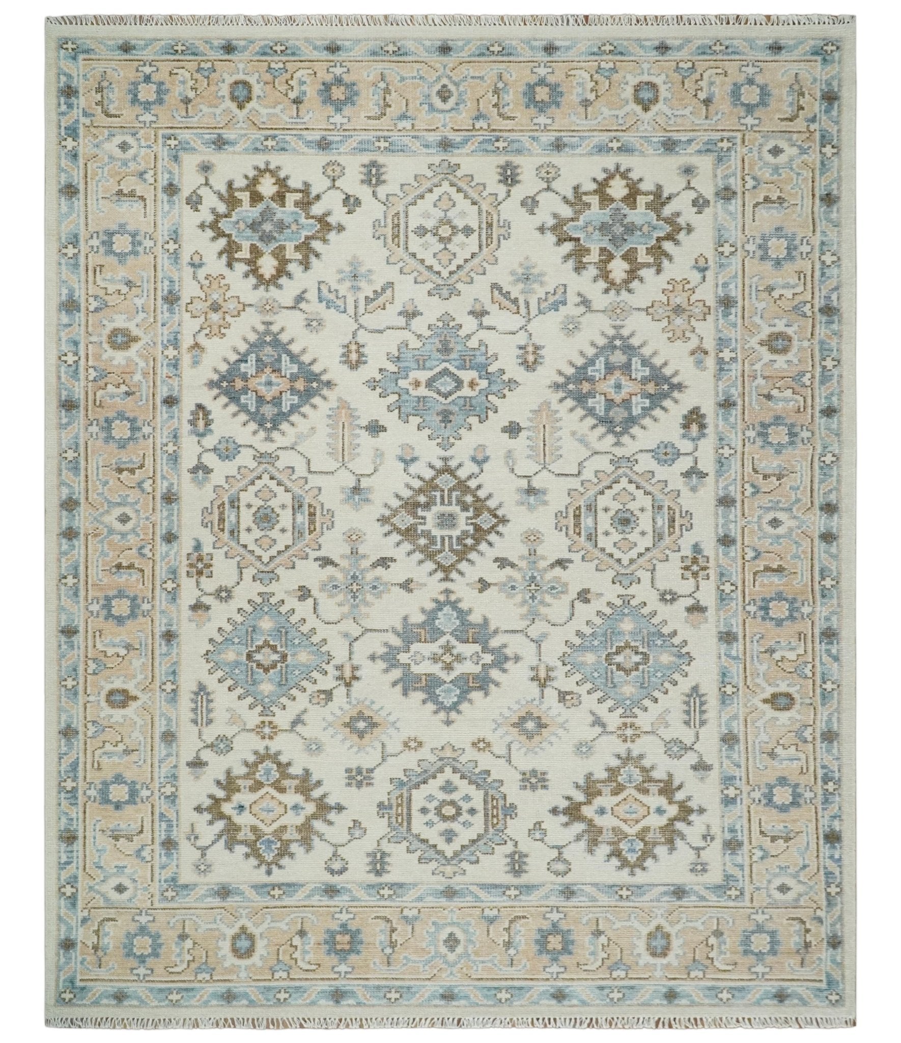 Custom Made Ivory, Peach and Gray Hand knotted Traditional Turkish Design Oushak wool Area Rug