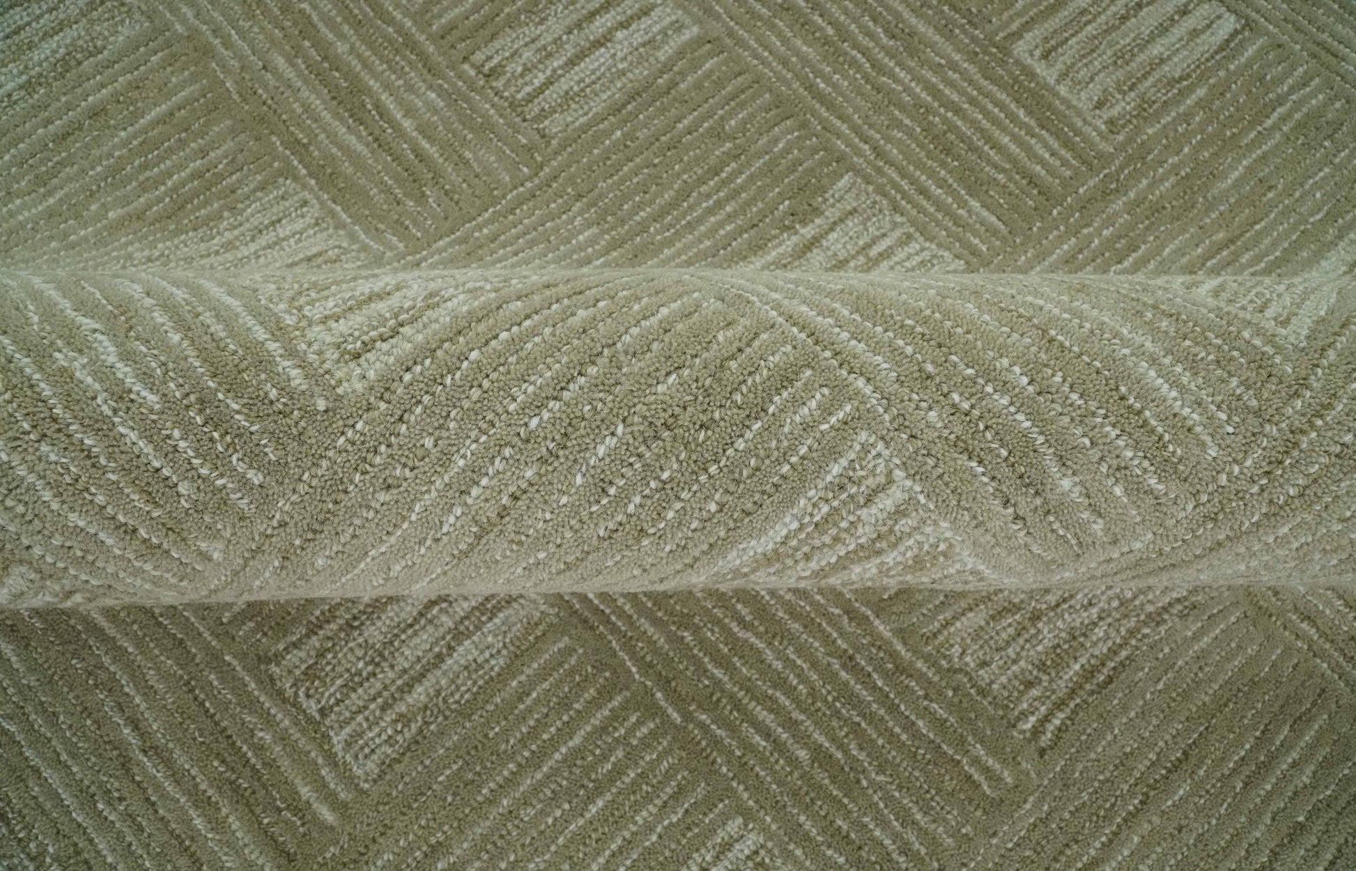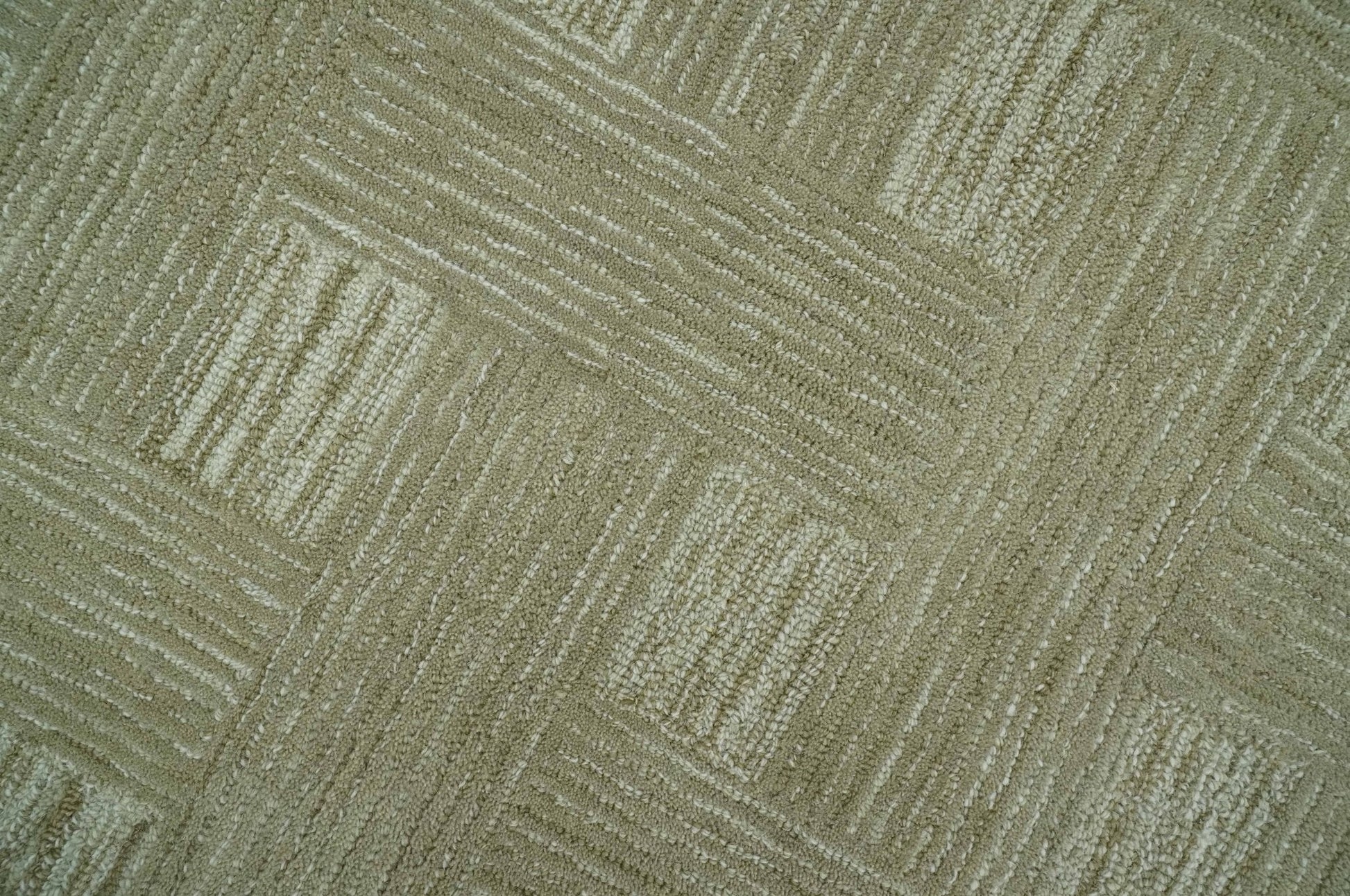 Custom Made Olive and Ivory Modern Geometrical Hand Tufted wool rug