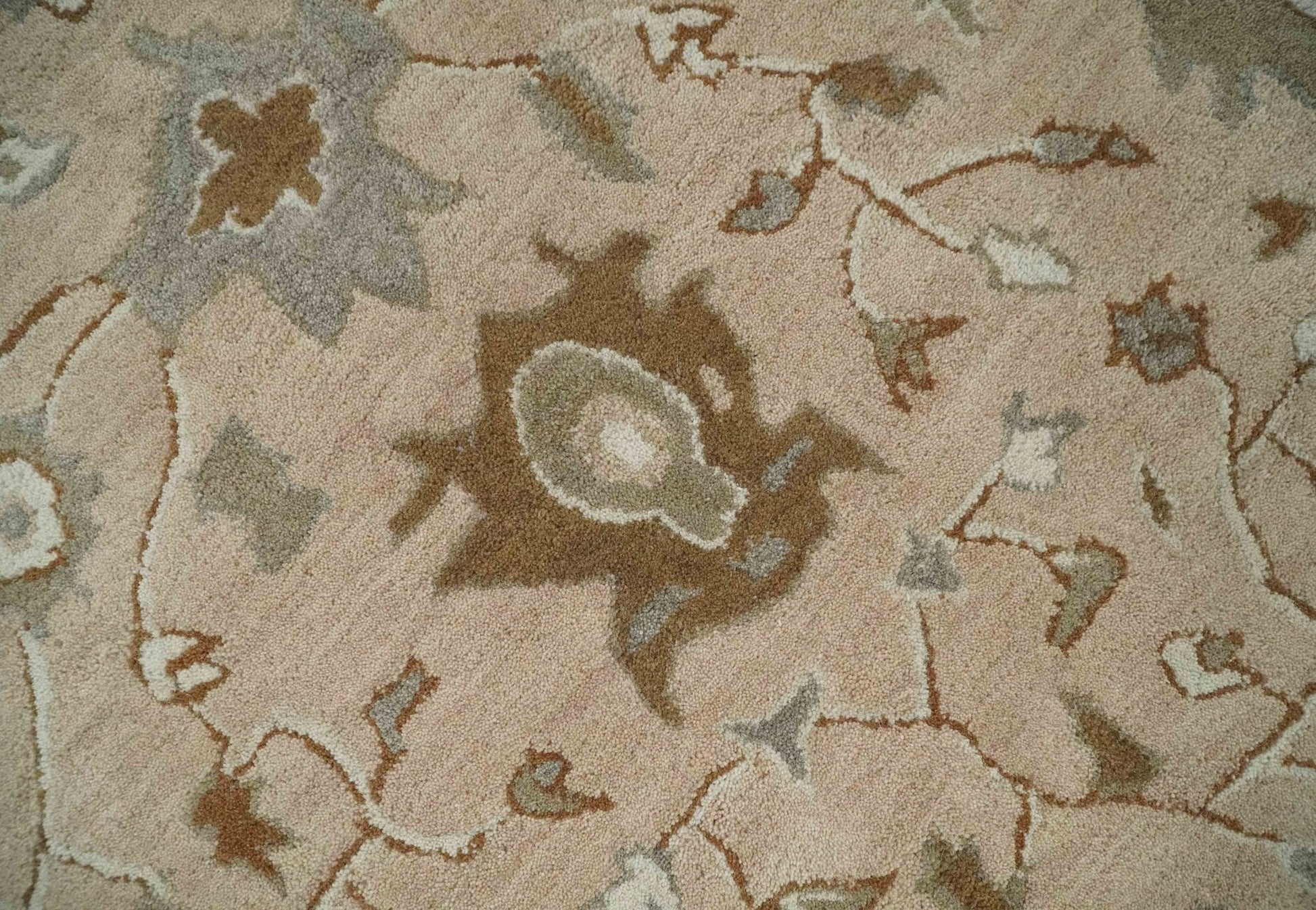 Custom Made Oushak Design Tufted Peach, Ivory and Olive Traditional Rug