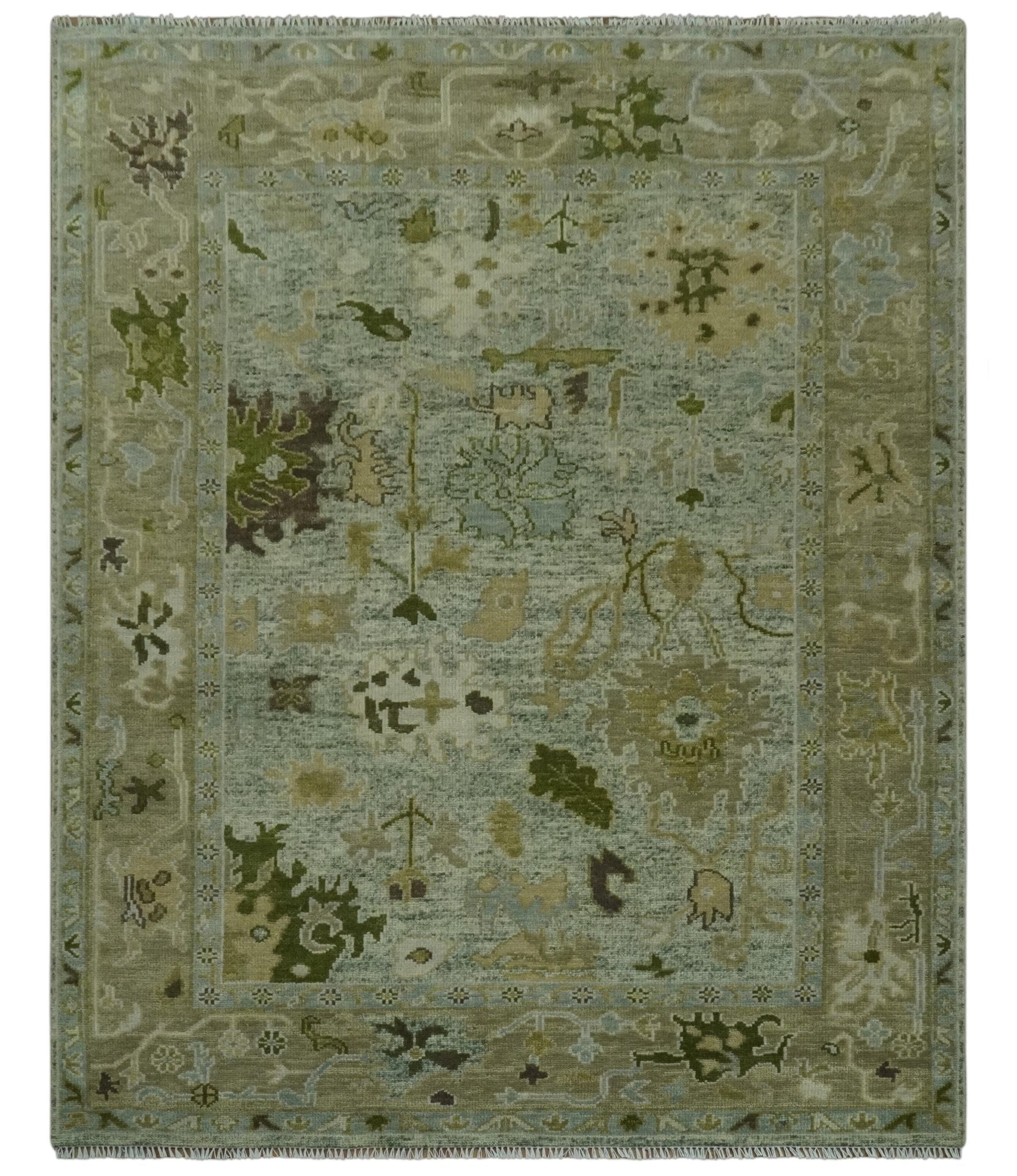 Custom Made Silver and Green Hand Knotted Traditional Oushak wool area rug