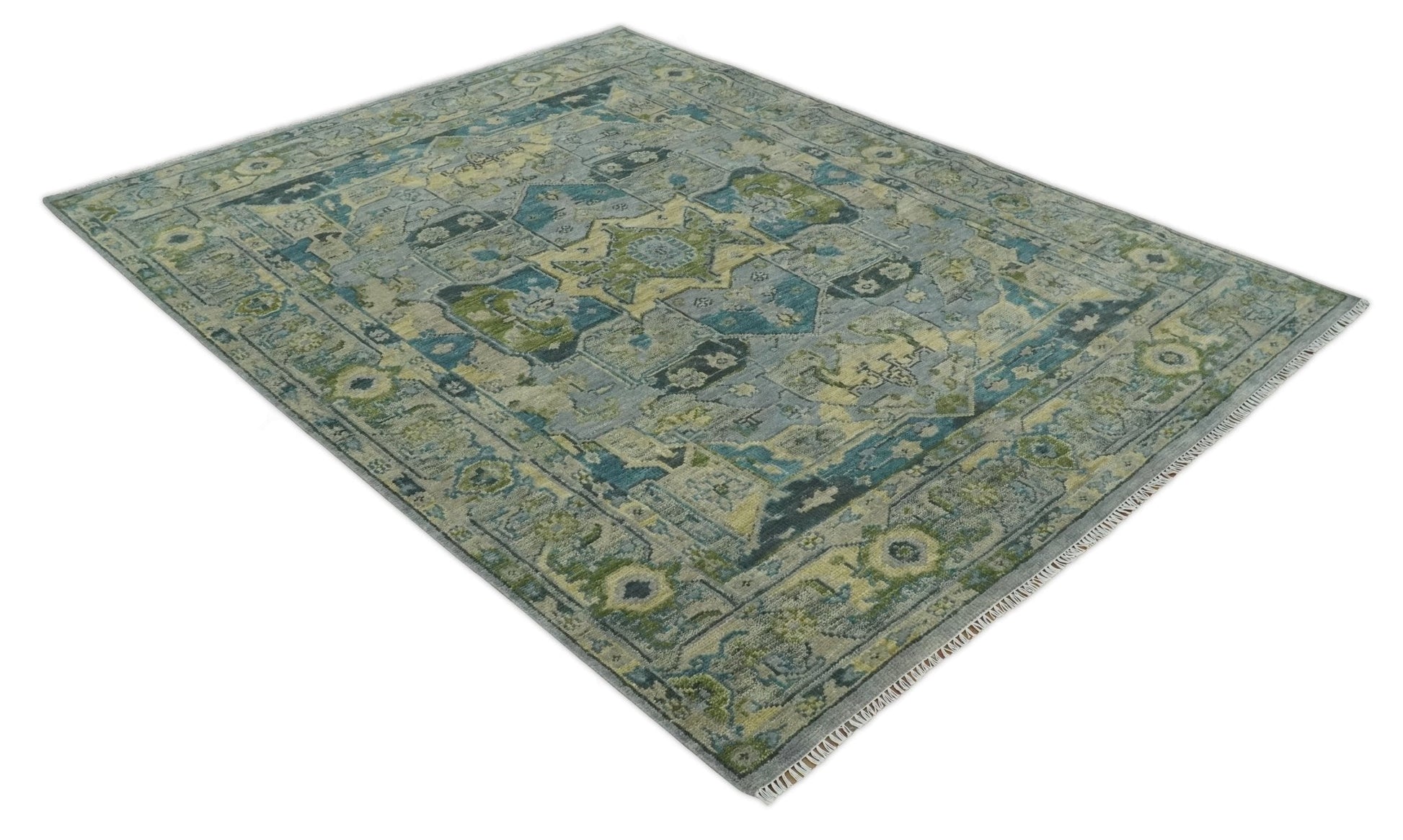 Custom Made Silver, Moss Green and Blue Heriz Traditional wool Area Rug