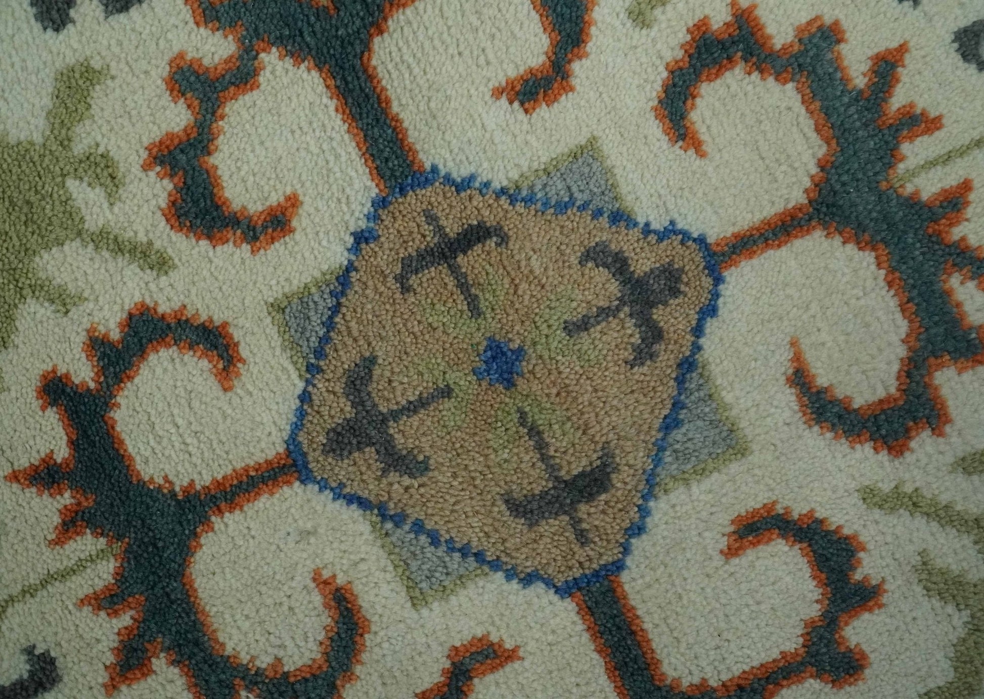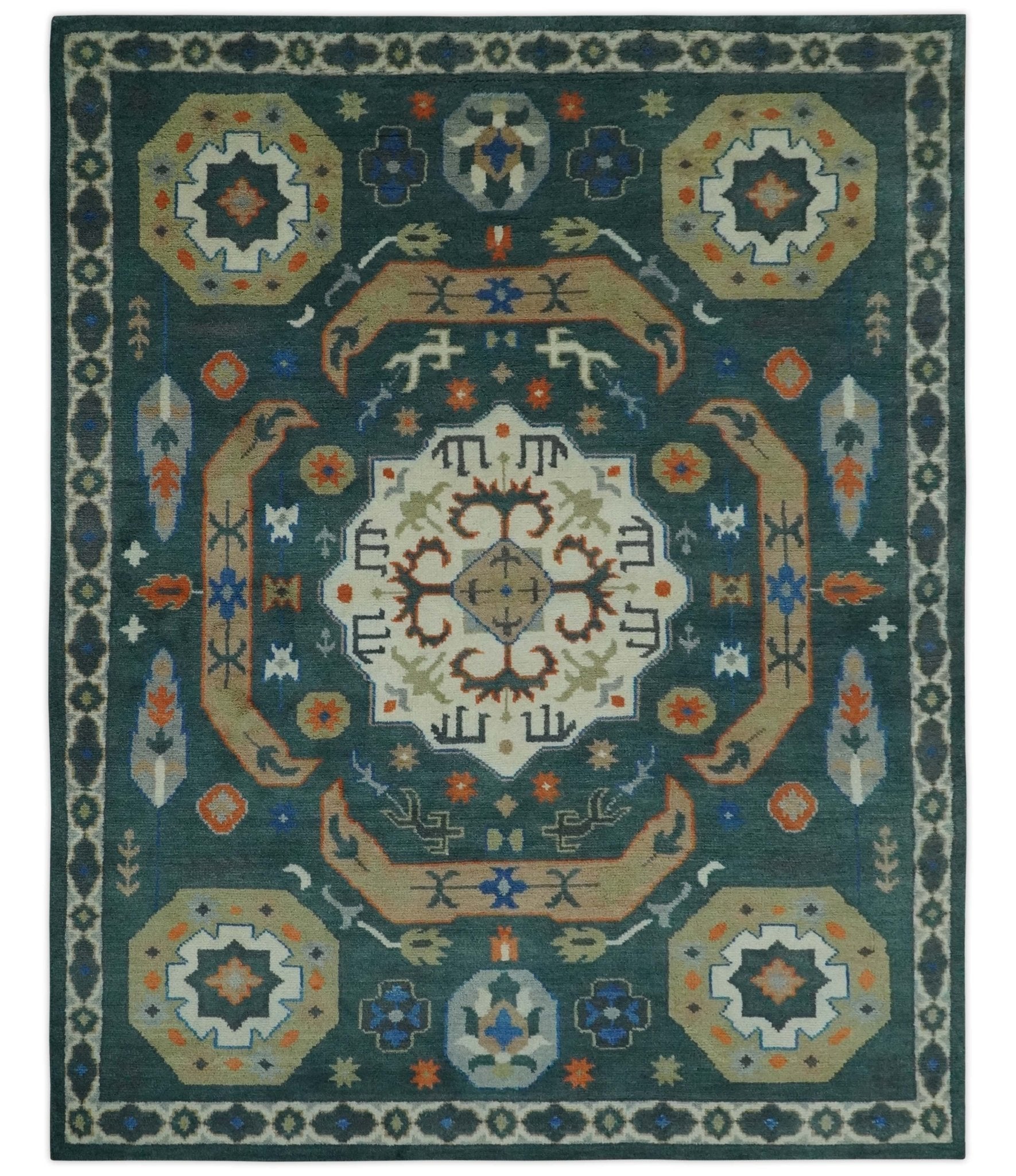Custom Made Teal and Ivory Hand Knotted Traditional Mamluk Design wool Rug