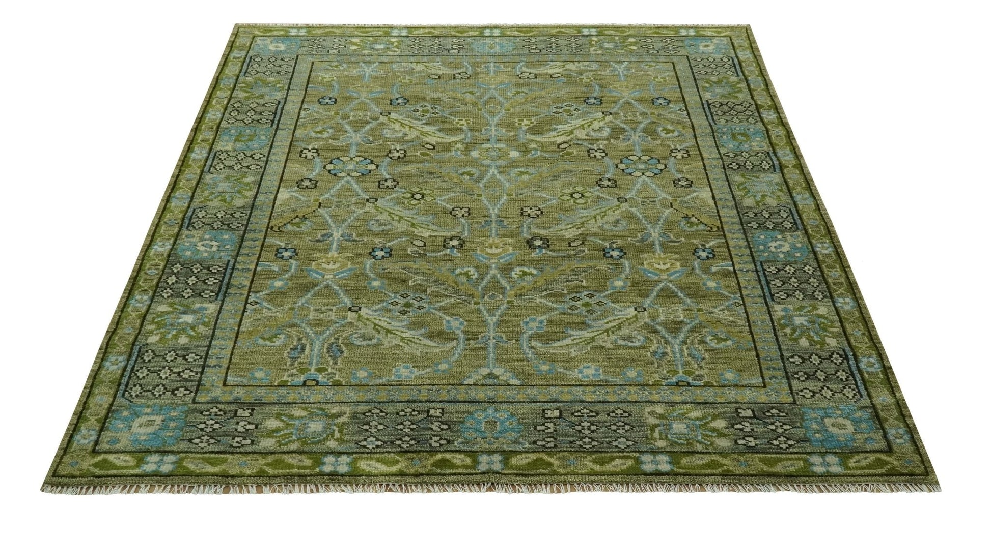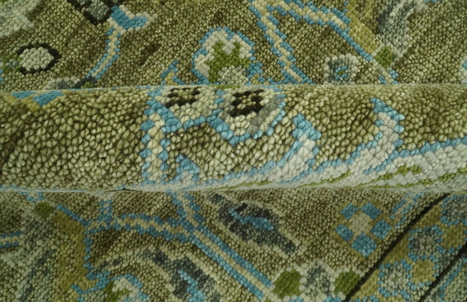Custom Made Traditional Floral Green and Aqua Hand Knotted wool area rug