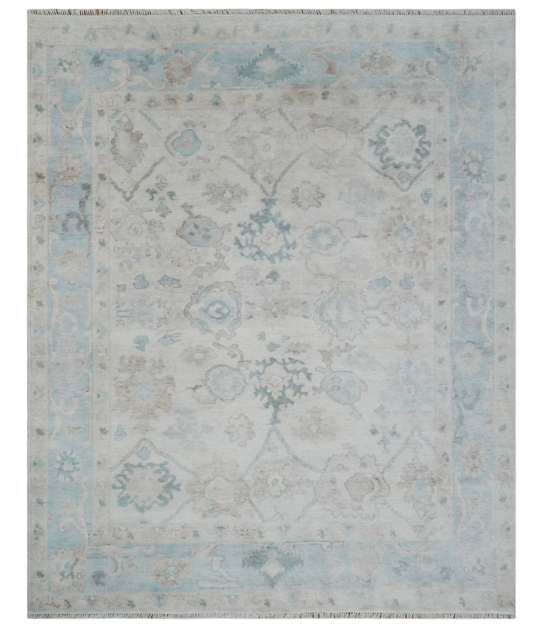 Custom Made Traditional Ivory and Silver Antique Style Oushak Hand knotted Wool Area Rug