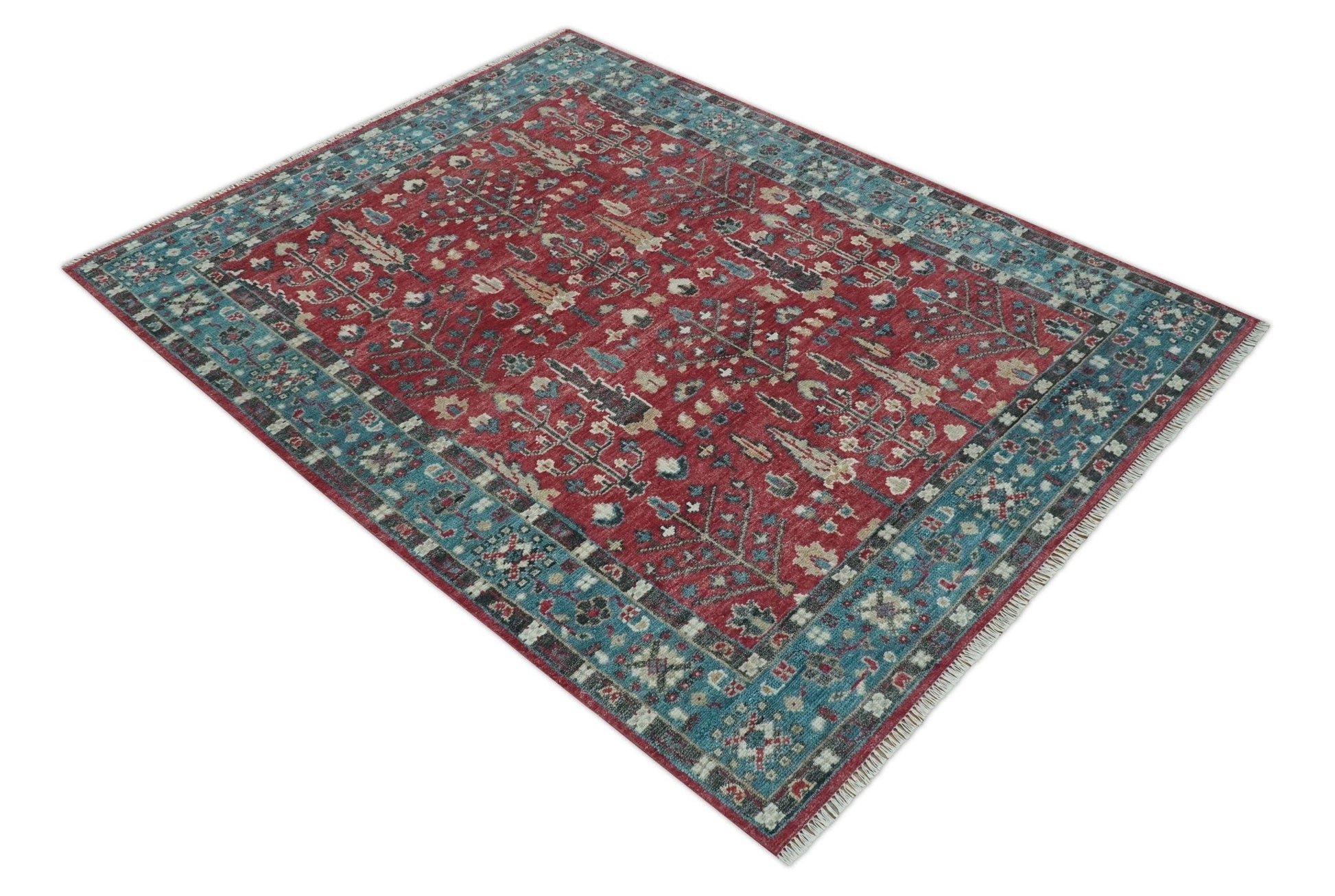 Custom Made Tree of Life Hand Knotted Maroon and Blue Traditional Wool area Rug