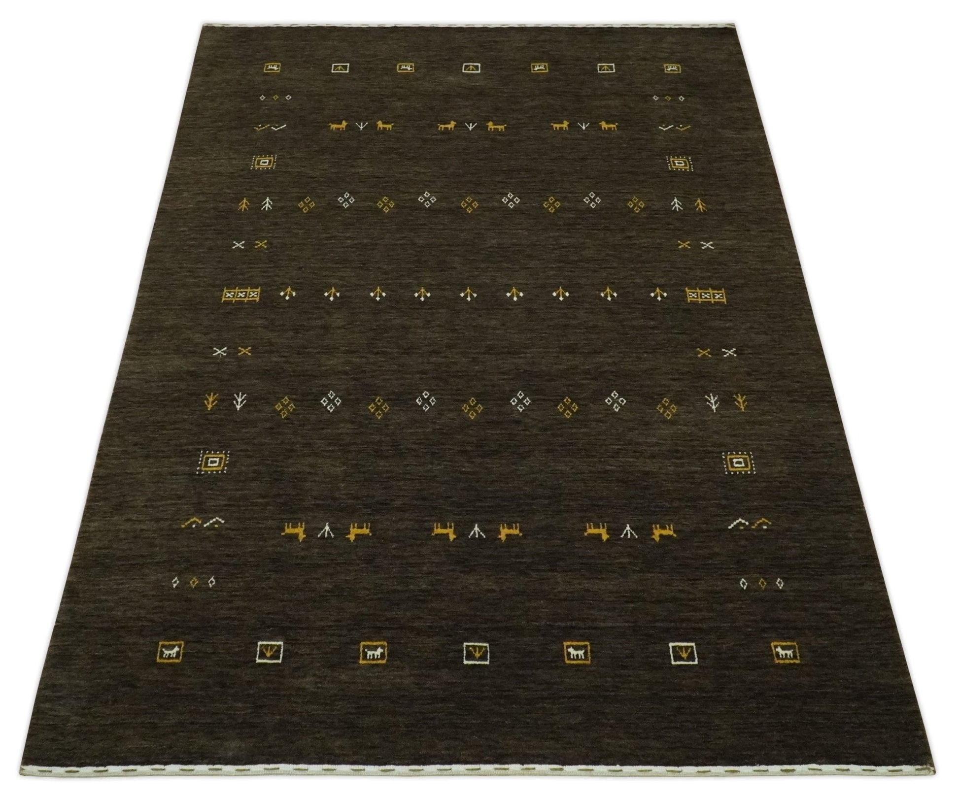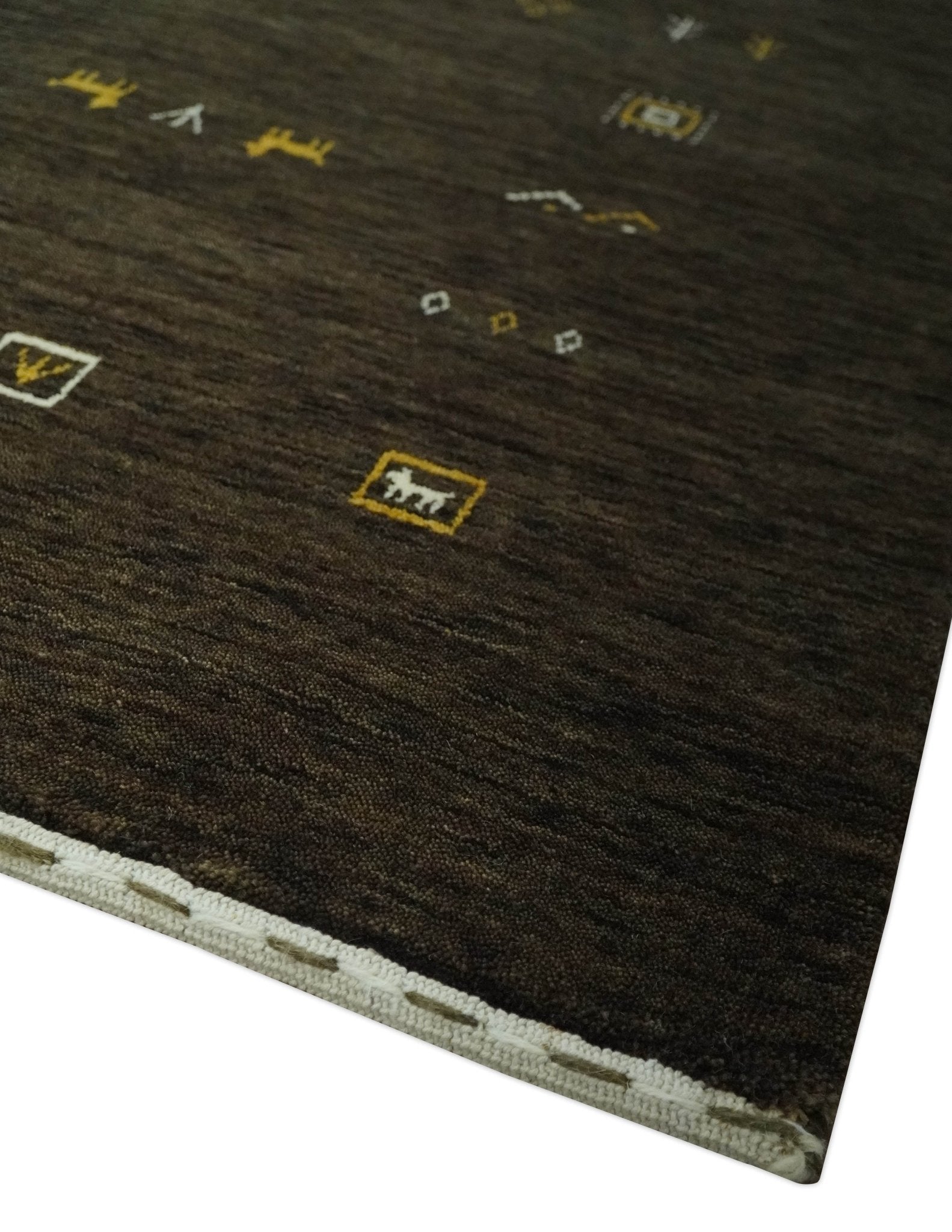 Custom Made Tribal look Greenish-Brown Traditional Hand loom Wool Area Rug