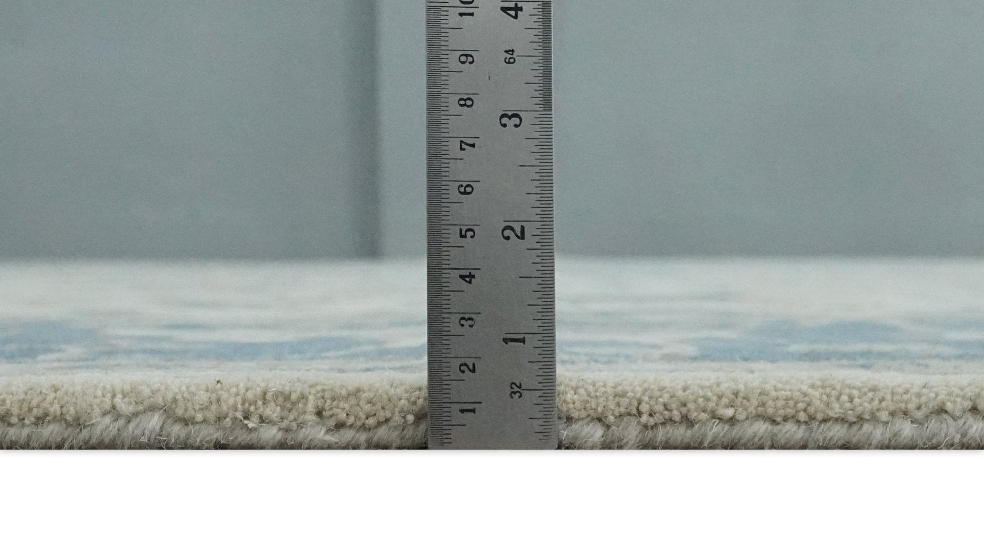 This beautiful modern Oushak rug features a beige and blue antique floral design, custom-made with a unique hand-tufted technique. Perfect for bedrooms, playrooms, and living rooms of any size.