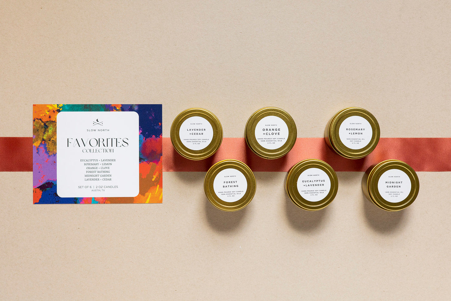 Experience the Favorites Collection, featuring Slow North's best-selling 100% soy wax and pure essential oil scents!