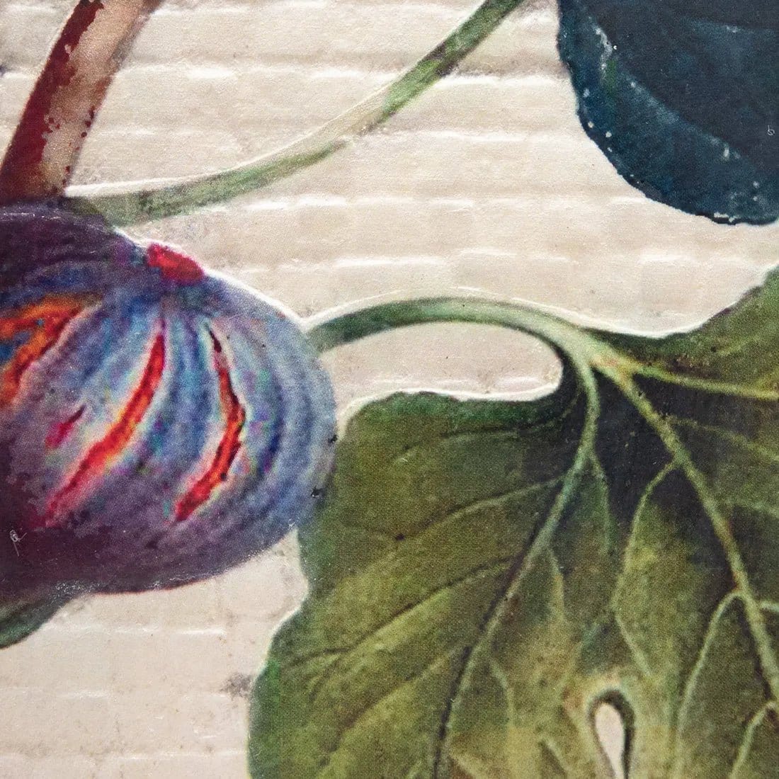 Released on July 19, 2023, the Fig Memory Block Tile by Sid Dickens is a stunning piece of art that embodies elegance and sophistication. Measuring 6x8 inches, this handmade tile features a beautifully detailed fig branch with lush green leaves and ripe figs, set against a textured background that adds depth and character to any space.