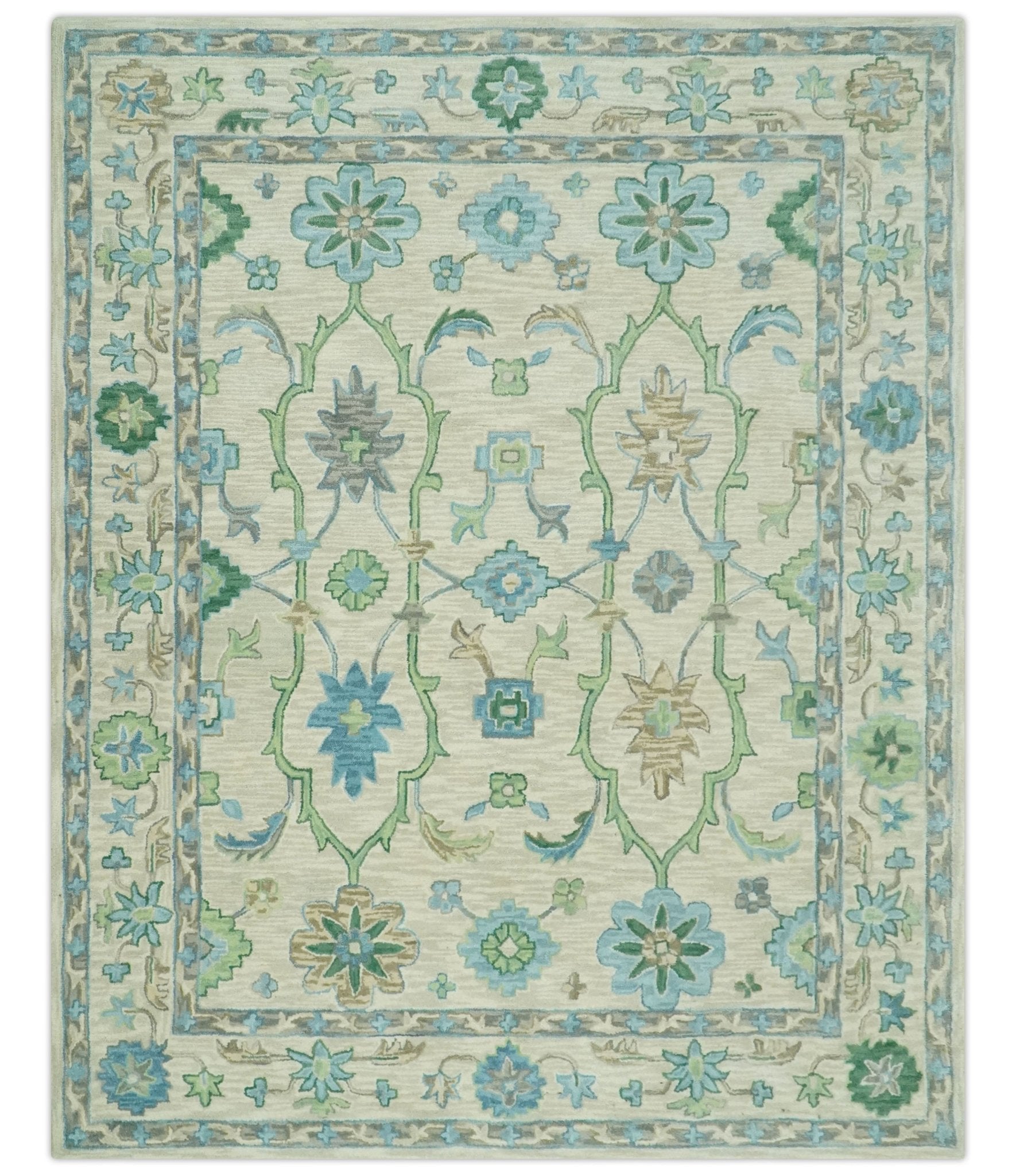 Floral Beige, Gray, Blue and Green Oriental Oushak Hand Tufted Custom Made wool Area rug