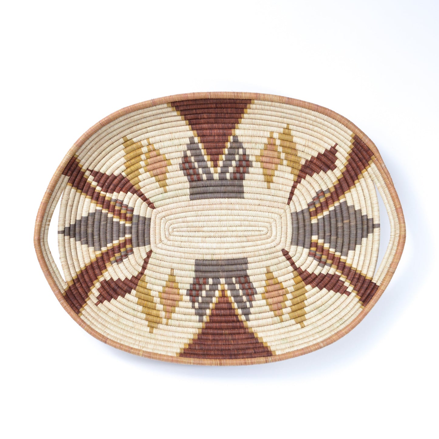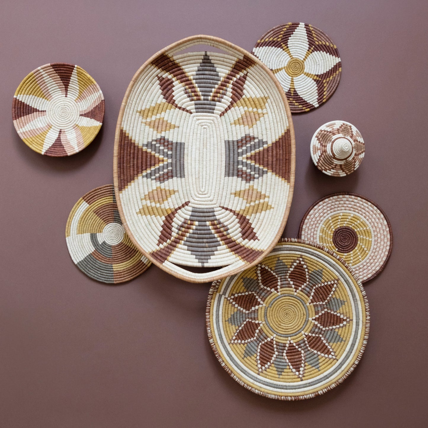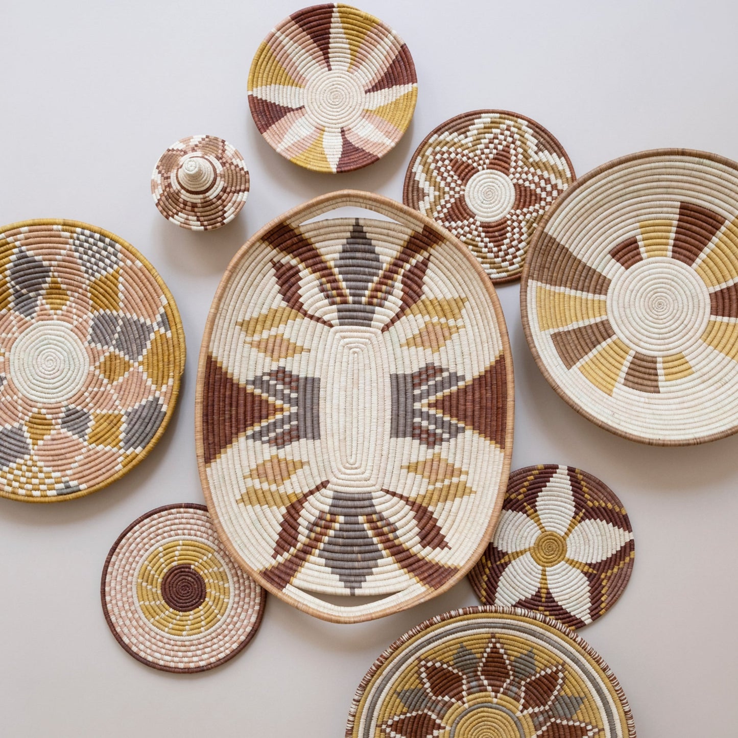 Each tray is meticulously handcrafted by talented women artisans from the Batoro tribe in the remote mountains of Western Uganda. These skilled weavers are part of a cooperative that empowers single mothers, widows, and marginalized women, providing them with training and a source of income through basket weaving.