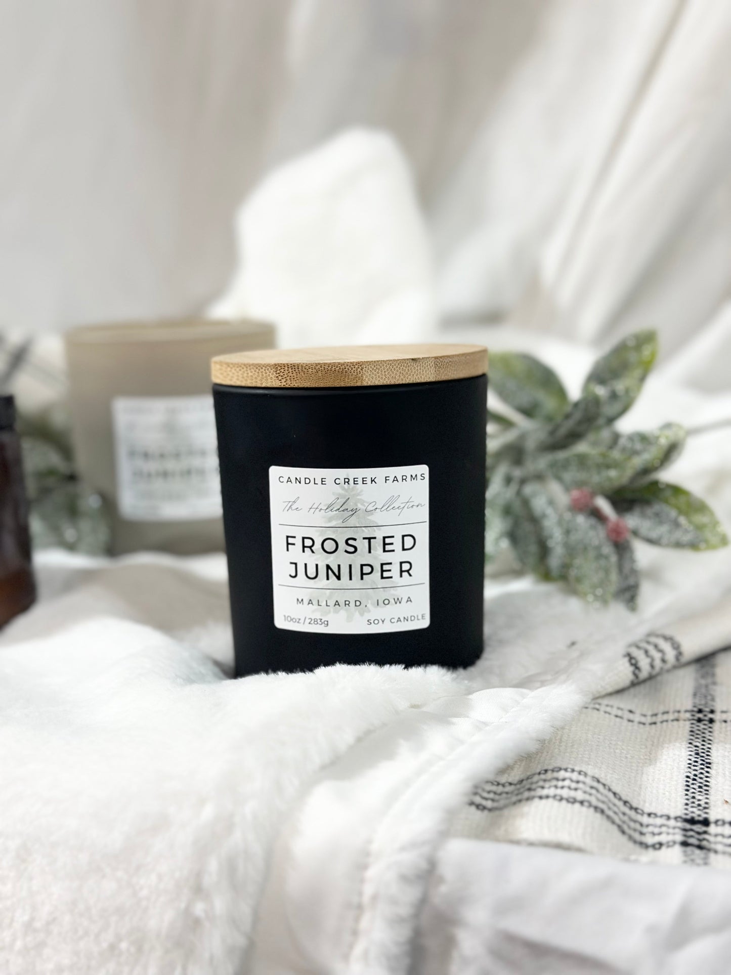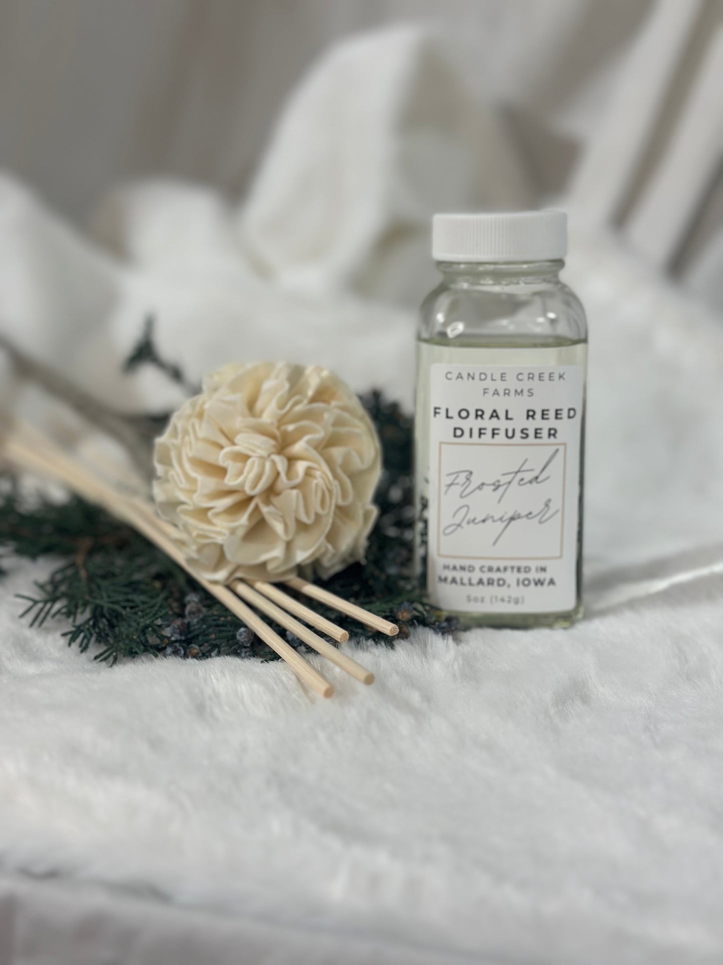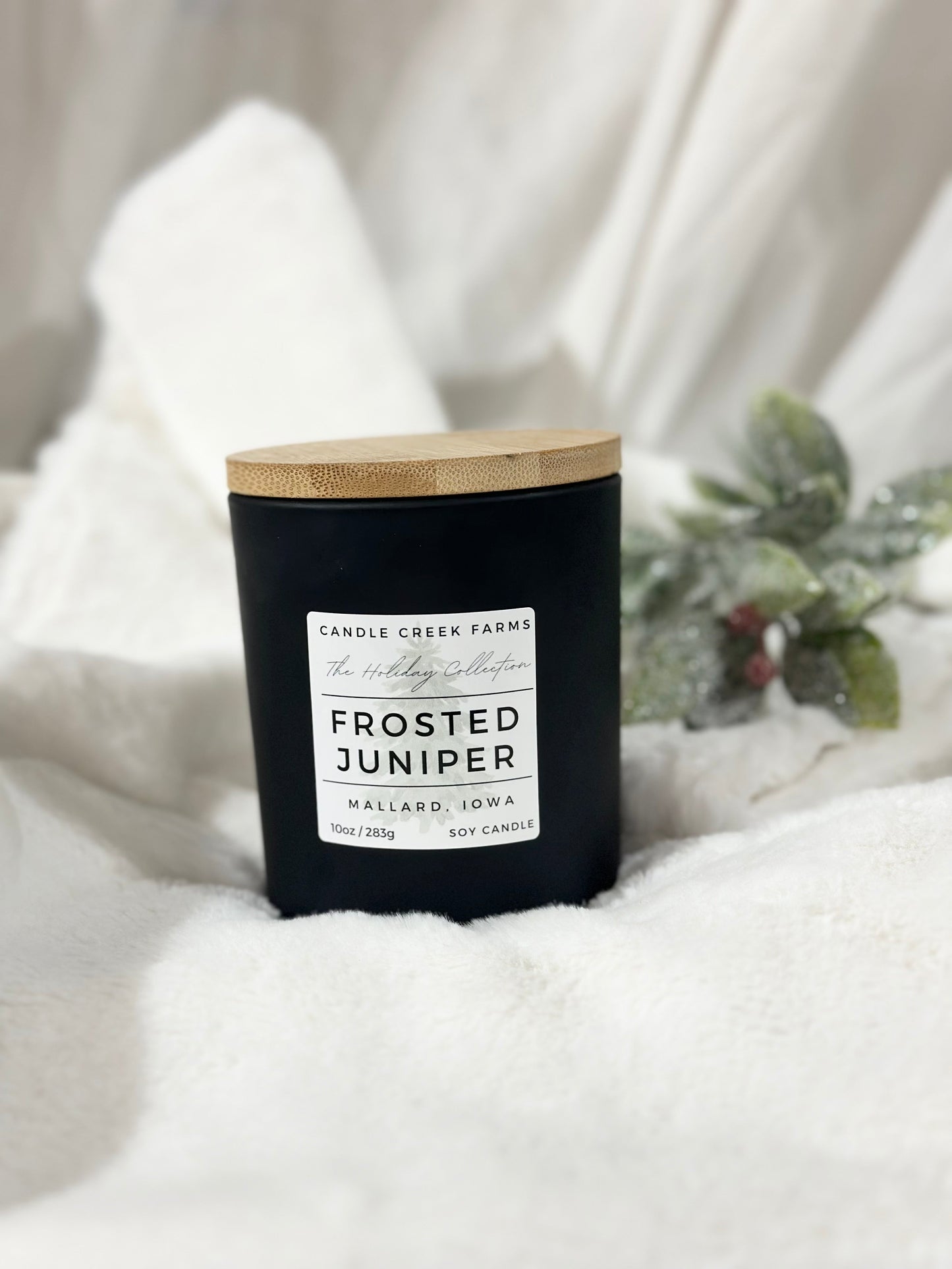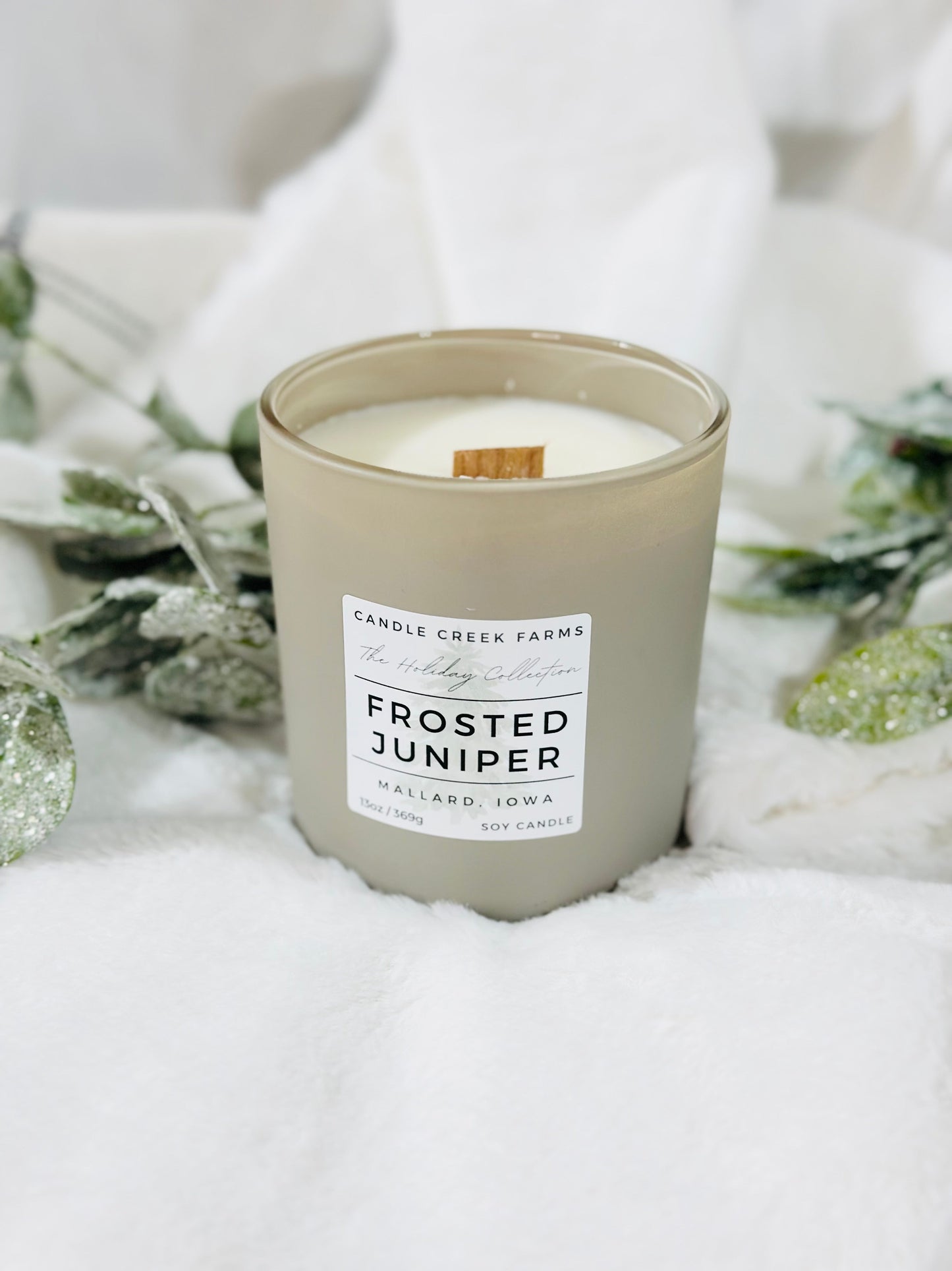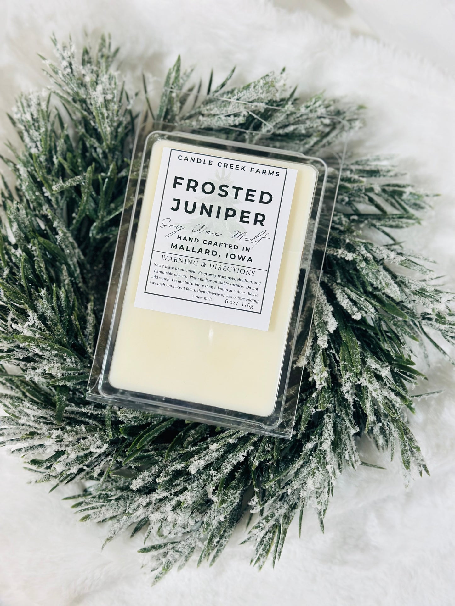 Frosted Juniper is an enchanted blend of evergreens and juniper berries. Cooling camphor, airy ozone, and a hint of citrus start off this scent. Middle notes of deer red berries balance the woody pine and juniper scents. The fresh evergreen is enforced with eucalyptus, fir needles, and cedar leaf essential oils. Frosted Juniper will give your space an inviting and nostalgic feel.