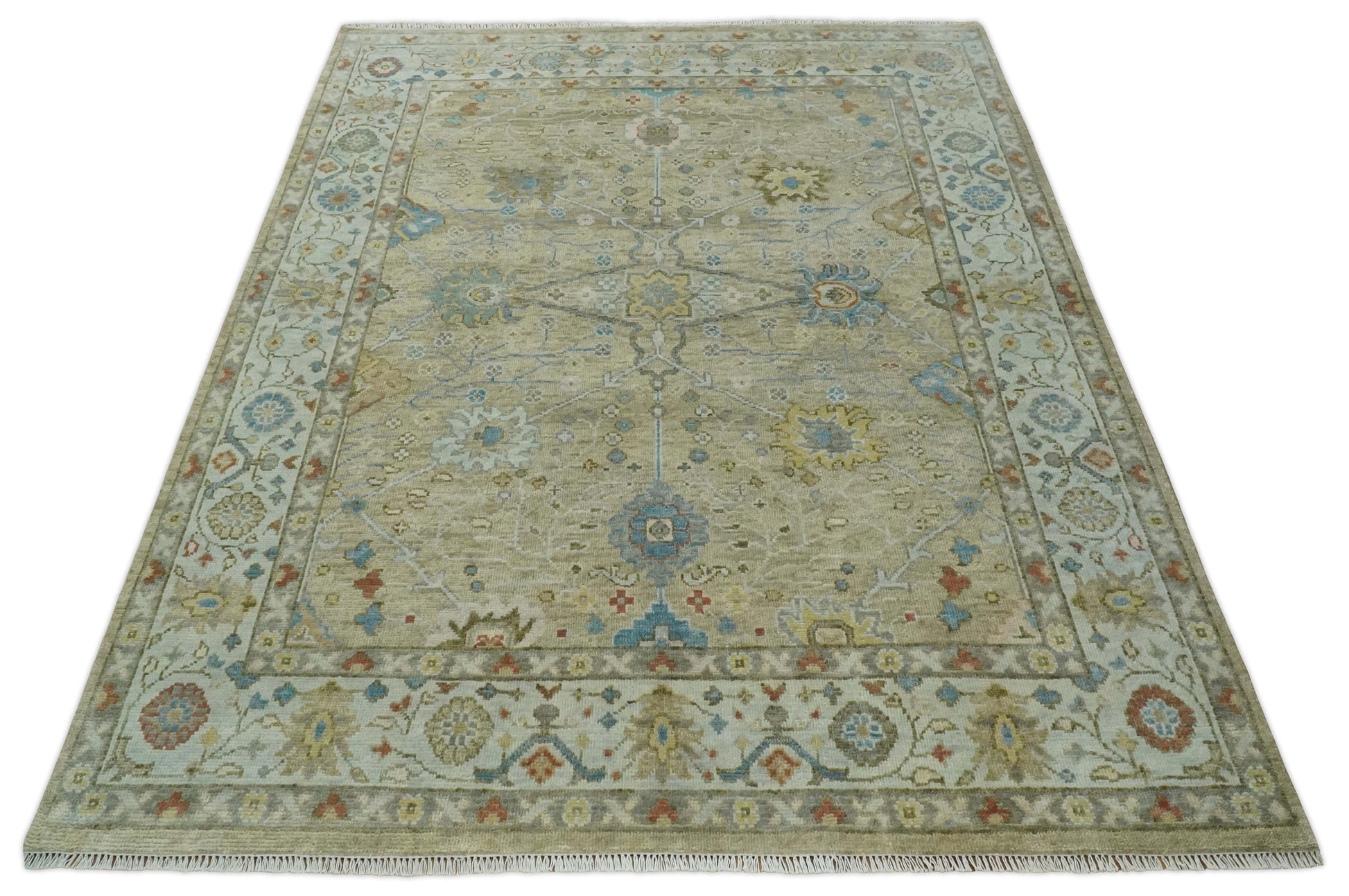 Hand Knotted Beige, Ivory and Gray Traditional Oushak Custom Made Wool Area Rug