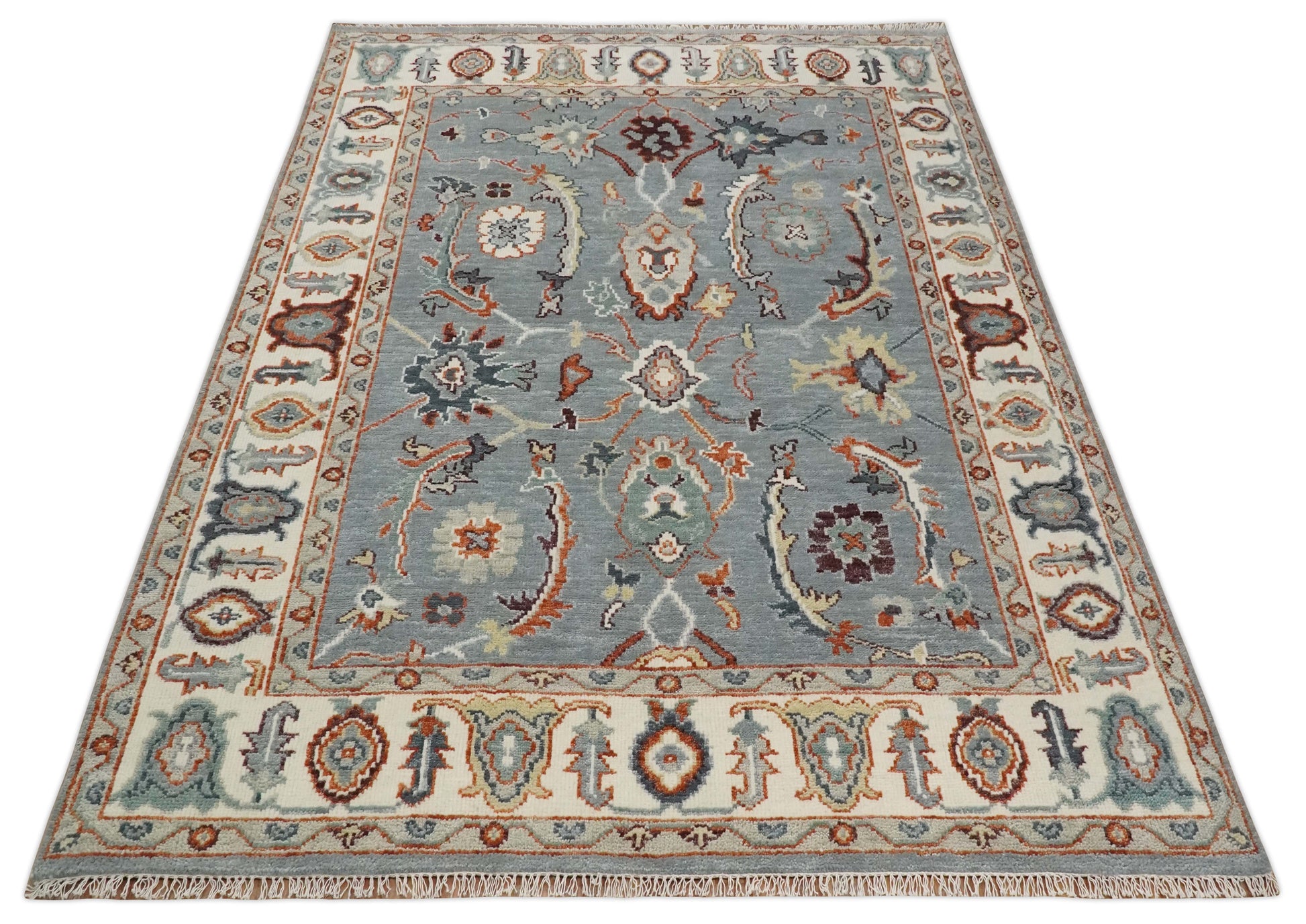 Hand Knotted Gray and Ivory Traditional Oriental Oushak Custom Made Wool Area Rug