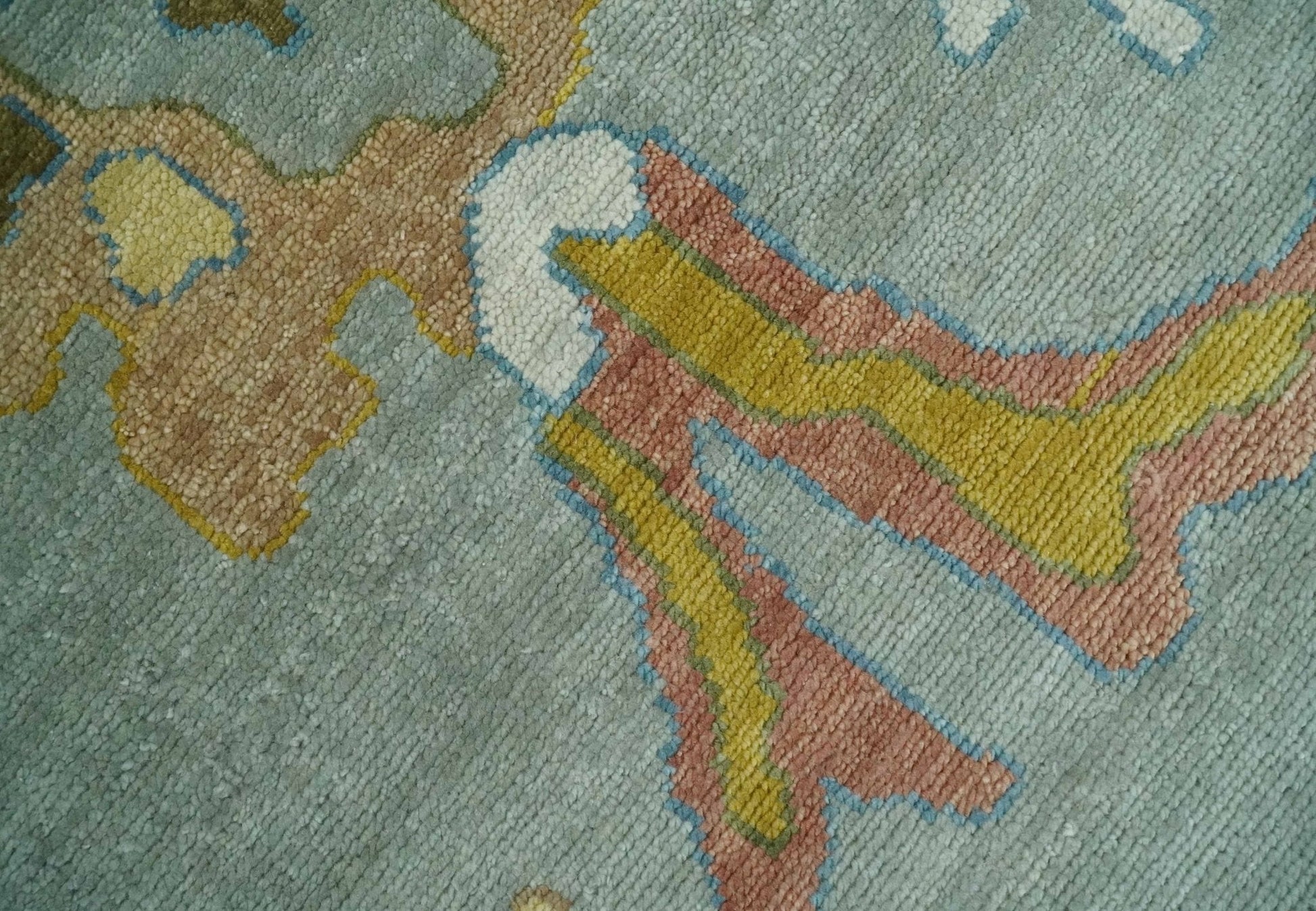 This Hand-Knotted Rug has been Made with Handspun Wool, which has a natural shine and softness to it. The beautiful colors of the rug carry a legacy of the famous Oushak rug, the traditional design of the rug completes your space without making it look busy. Oushak rugs are durable and can last for decades if treated right.