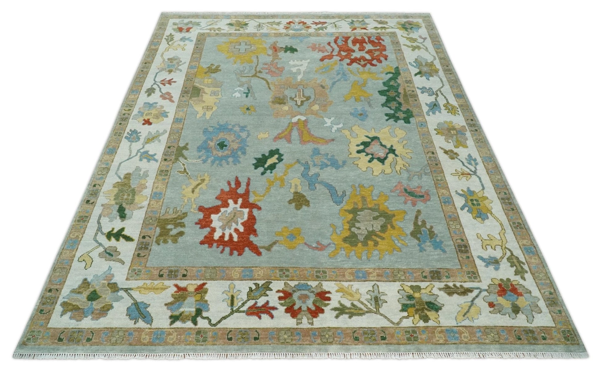 Hand Knotted Gray and Ivory Traditional Oushak Custom Made Wool Area Rug