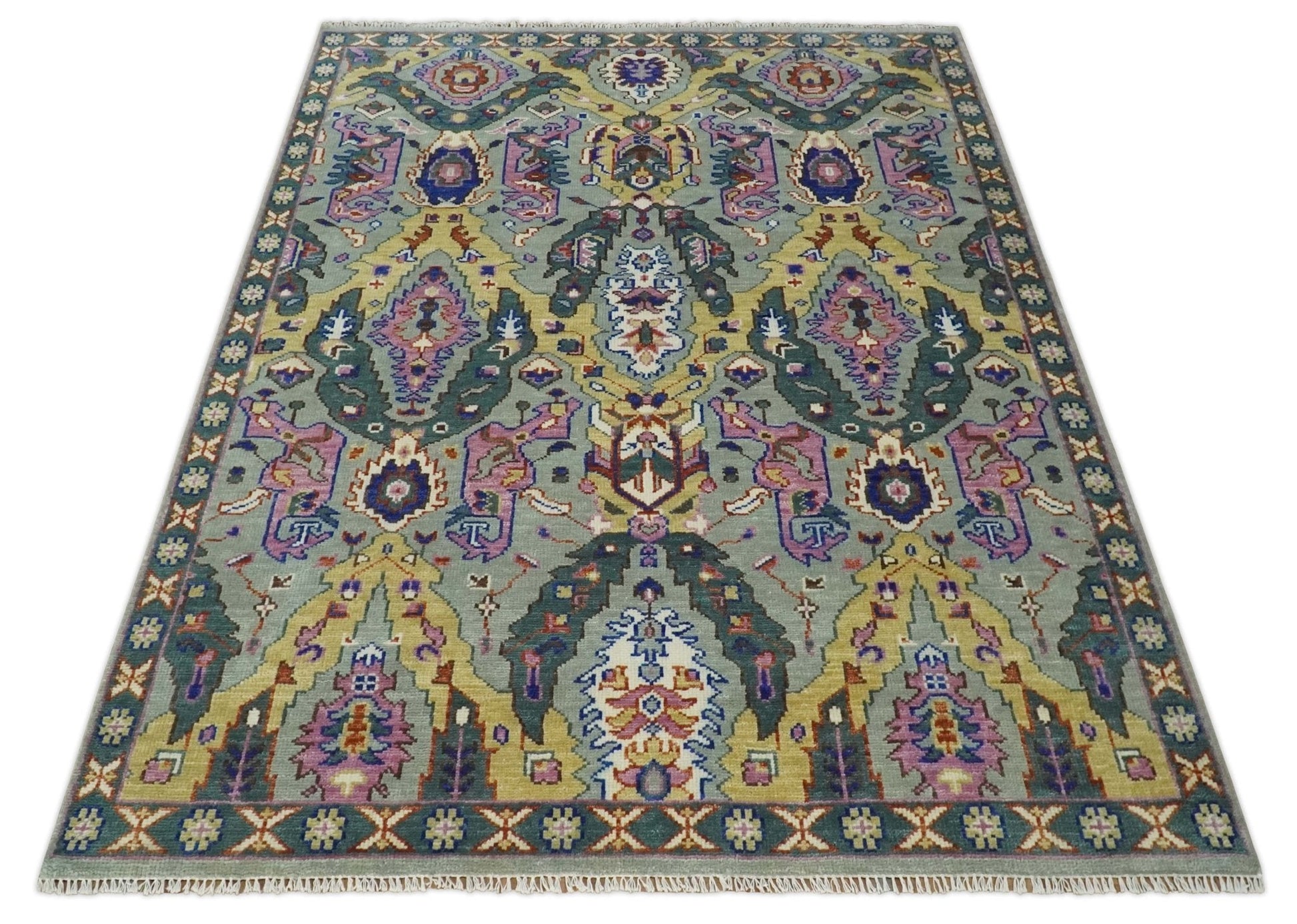 Hand knotted Green, Pink and Gold Traditional large design Antique Oushak Custom Made wool Area Rug