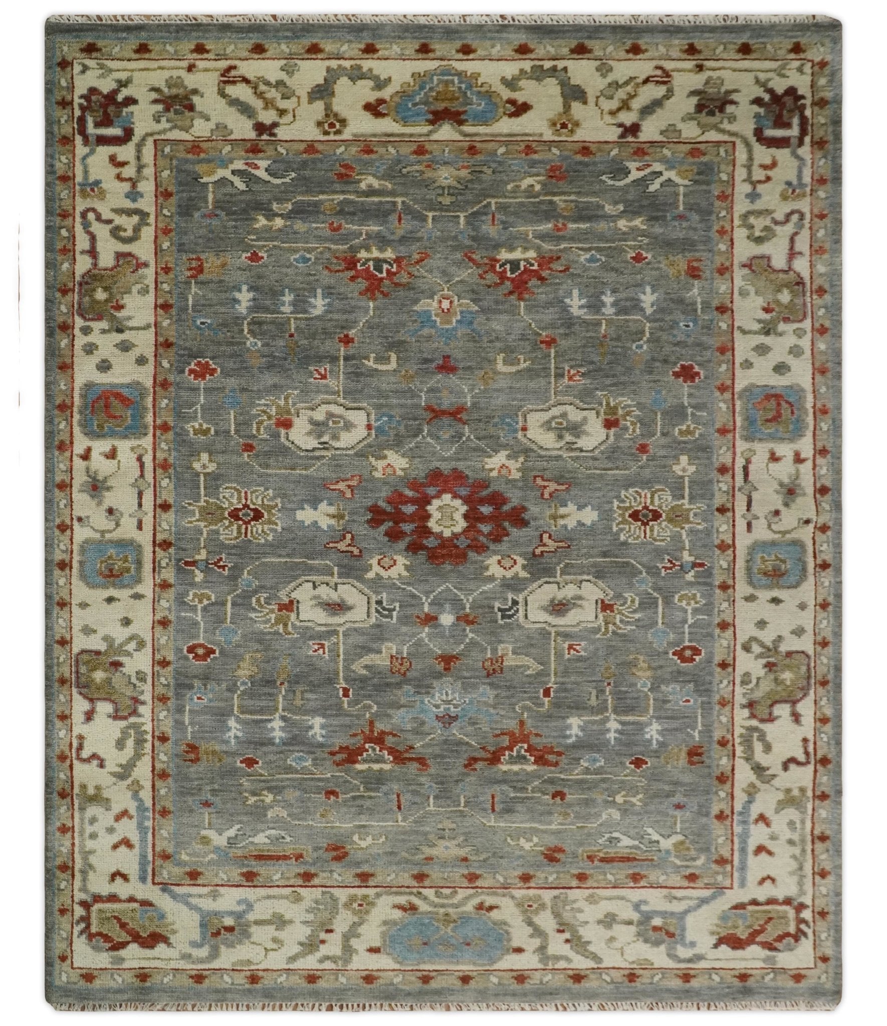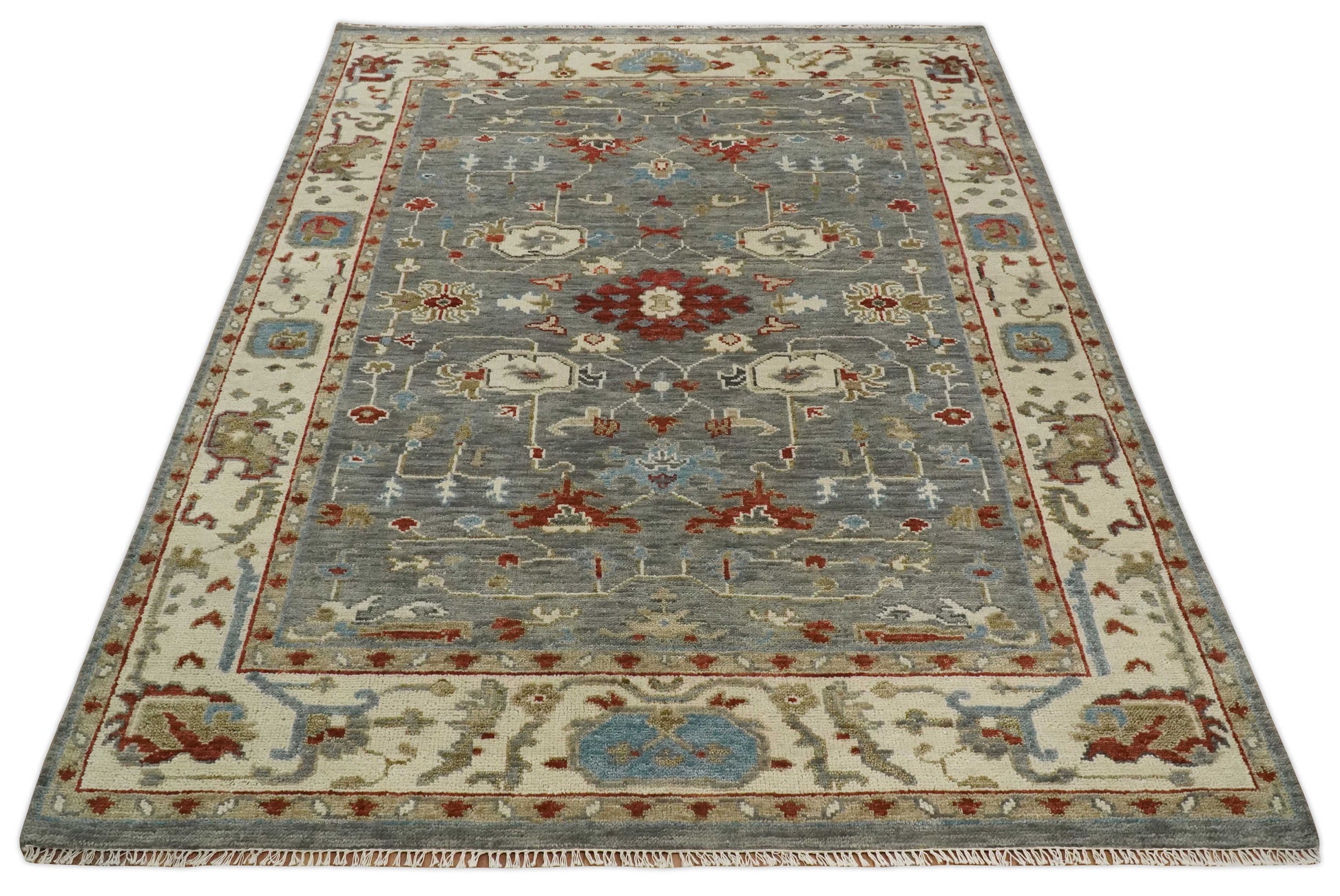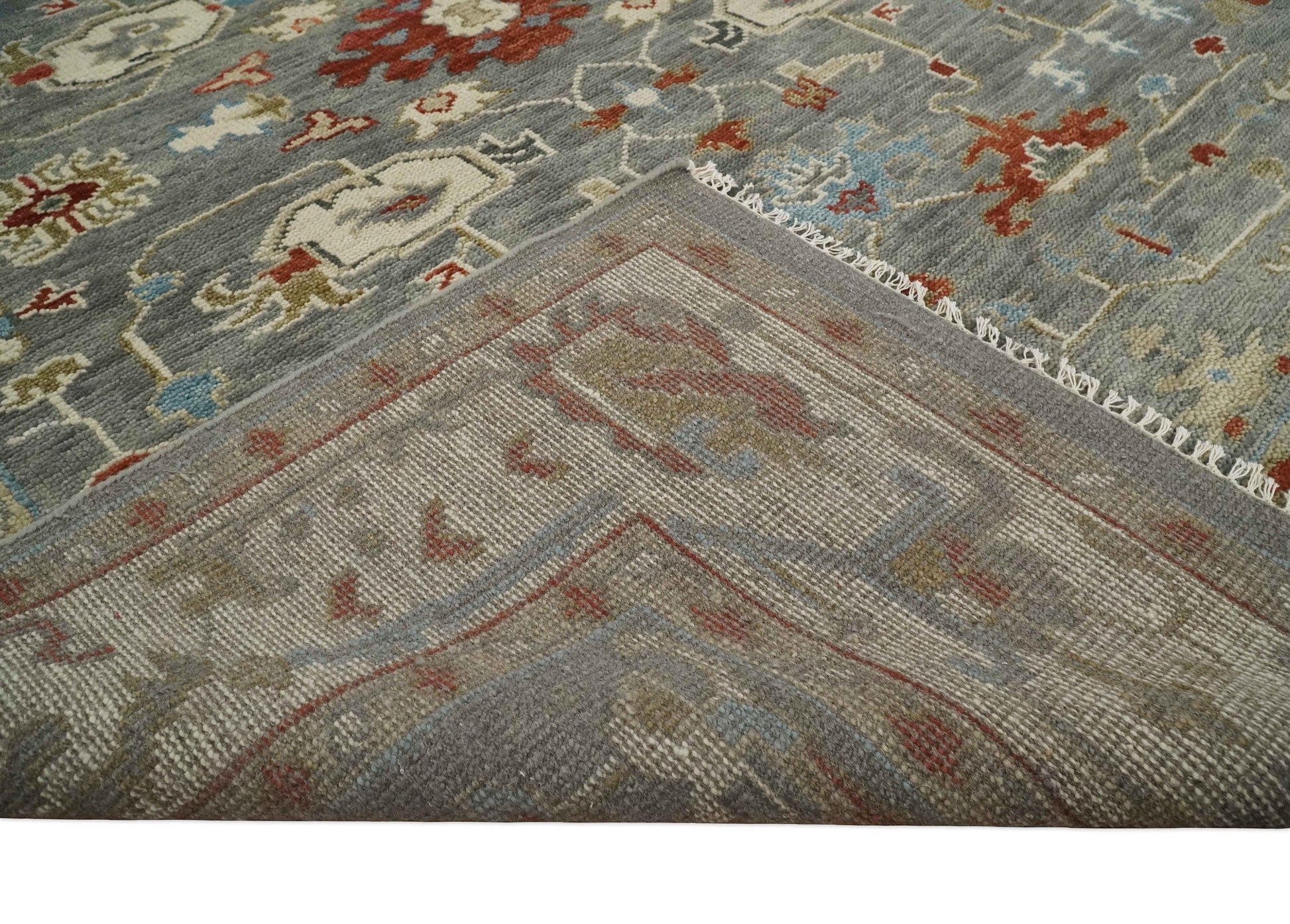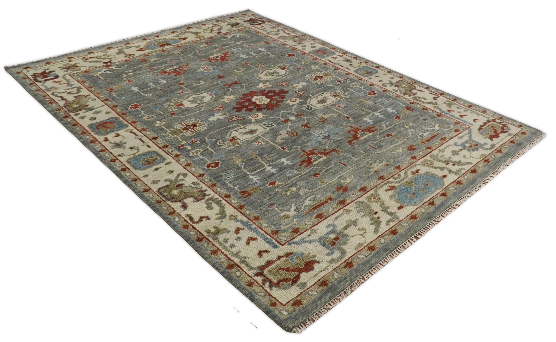 Hand Knotted Living Room Rug Charcoal, Red and Beige Traditional Vintage Style Custom Made Wool Area Rug