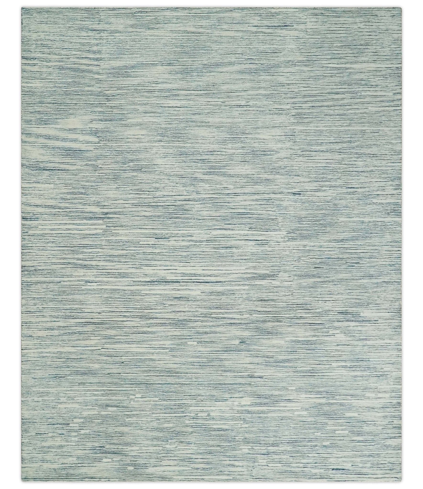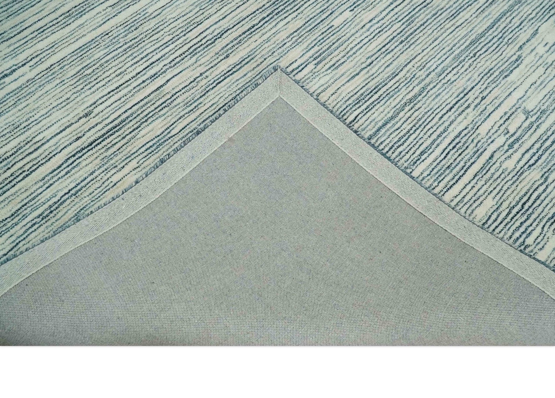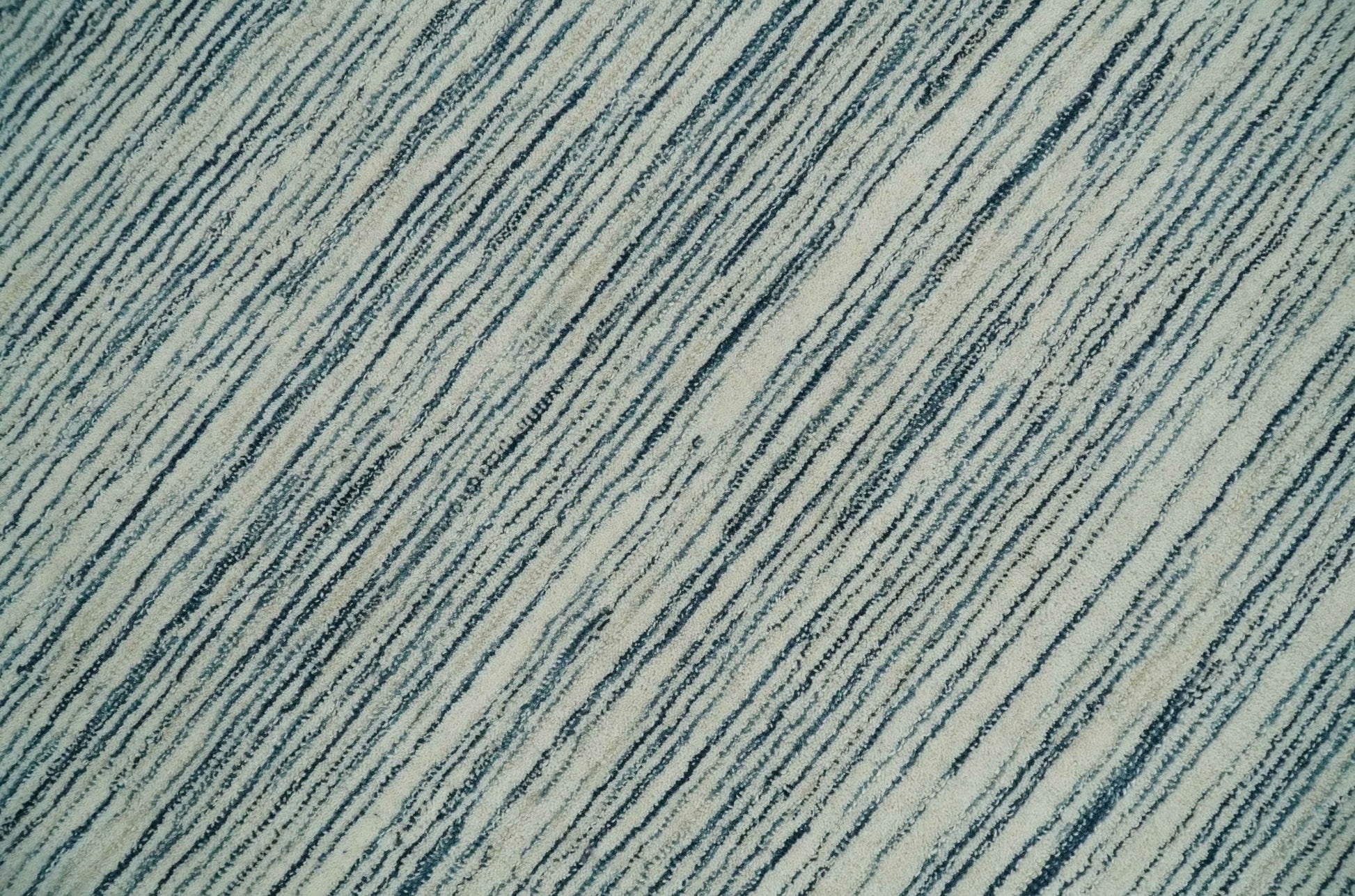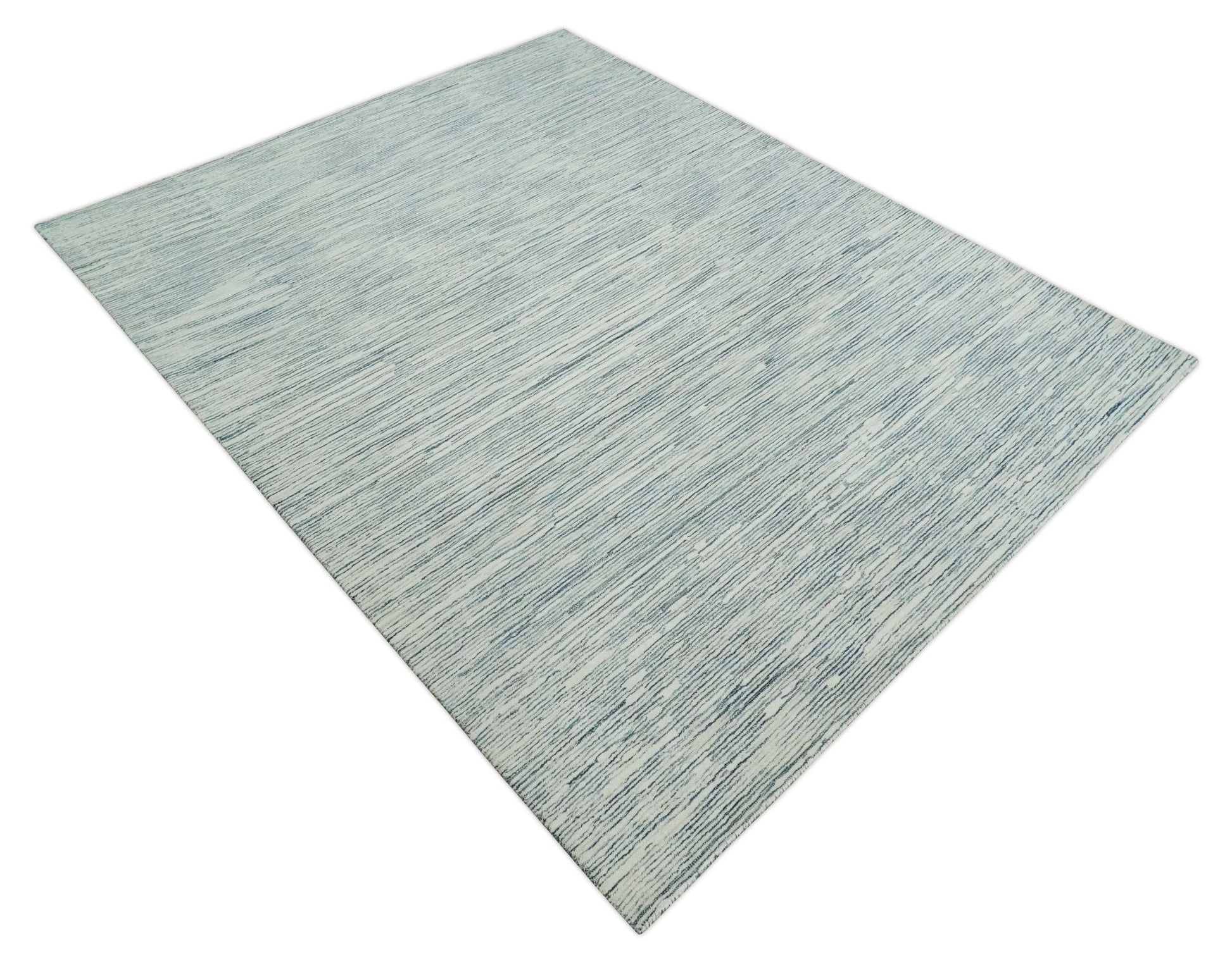 Hand Tufted Woolen Modern White and Blue Custom Made Area Rug