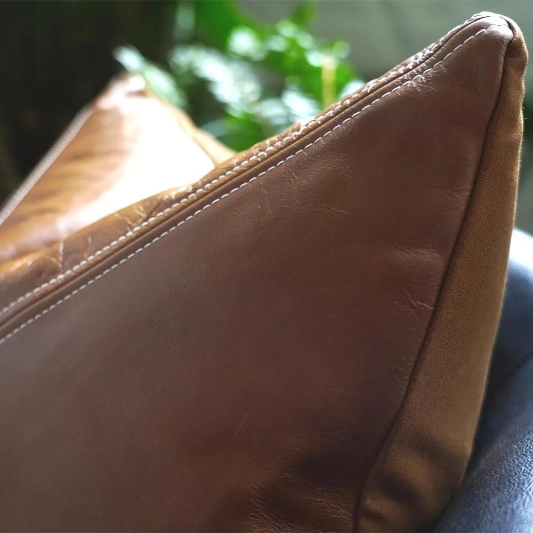 Handcrafted Genuine Leather Accent Pillow | 18" Leather Throw Pillow