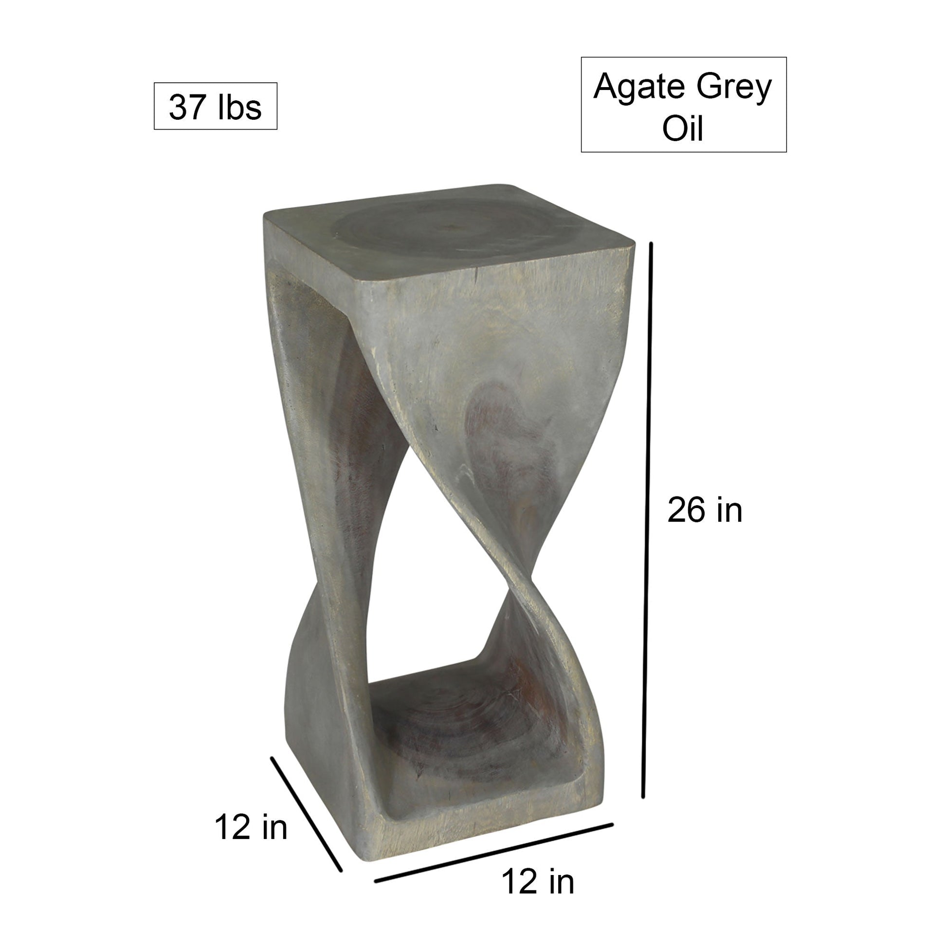 The Original Twist Stool Design, Hand-carved and completely eco-friendly is this Twist Stool at 12 inches square by 26 inches high.