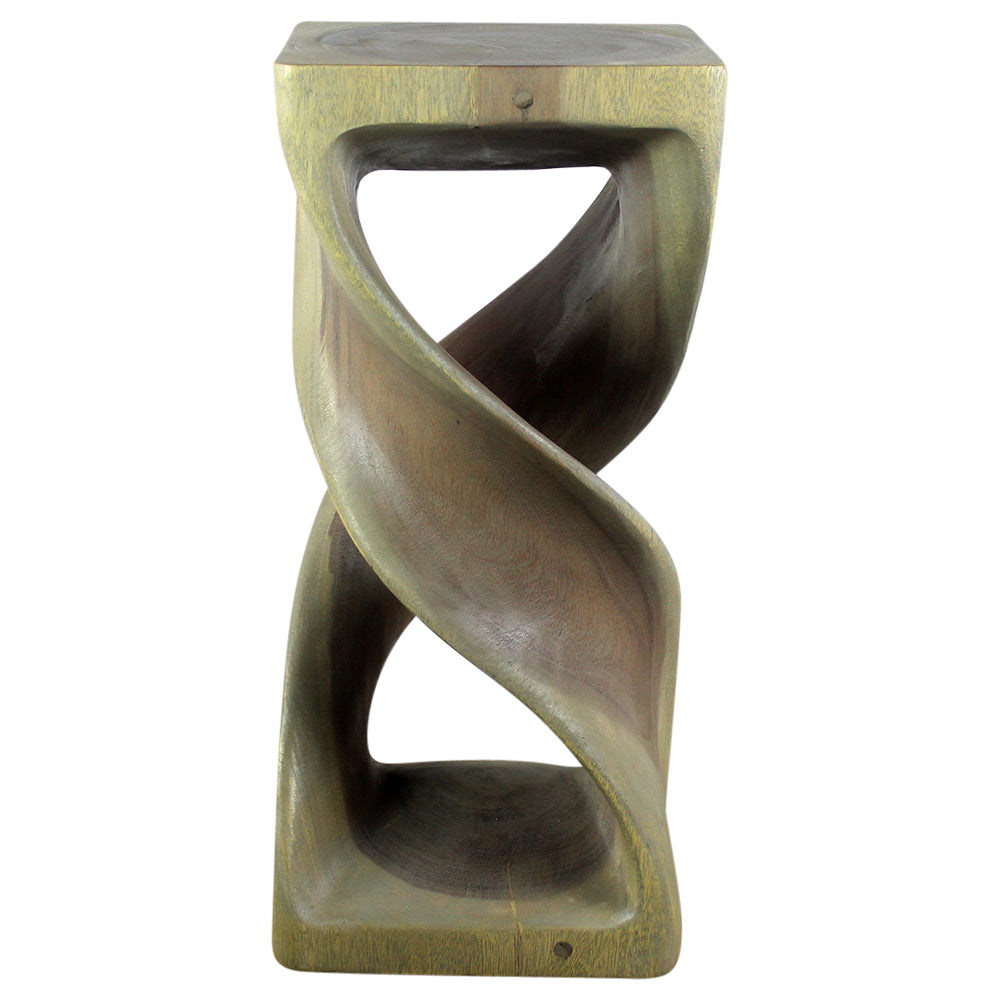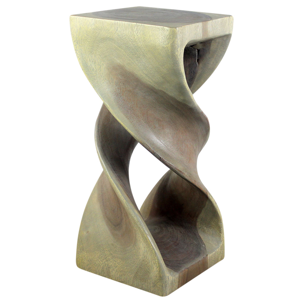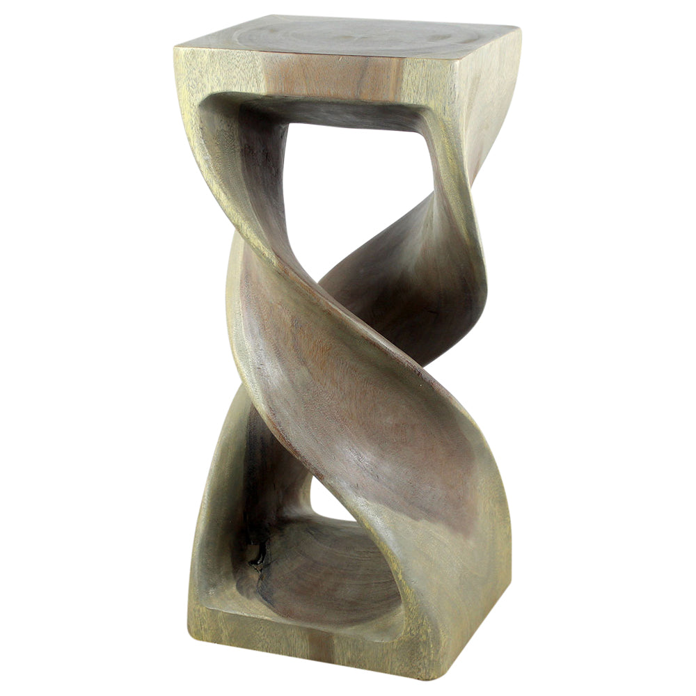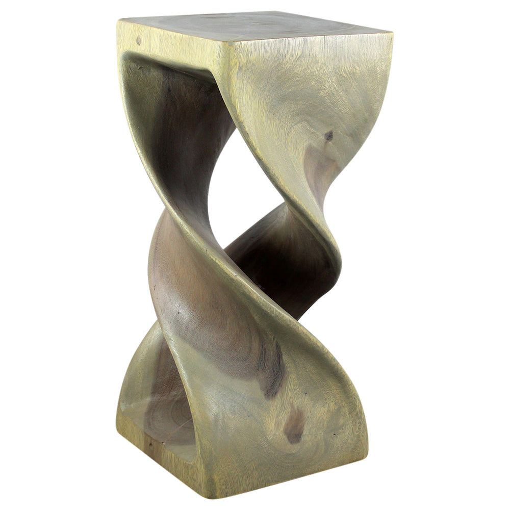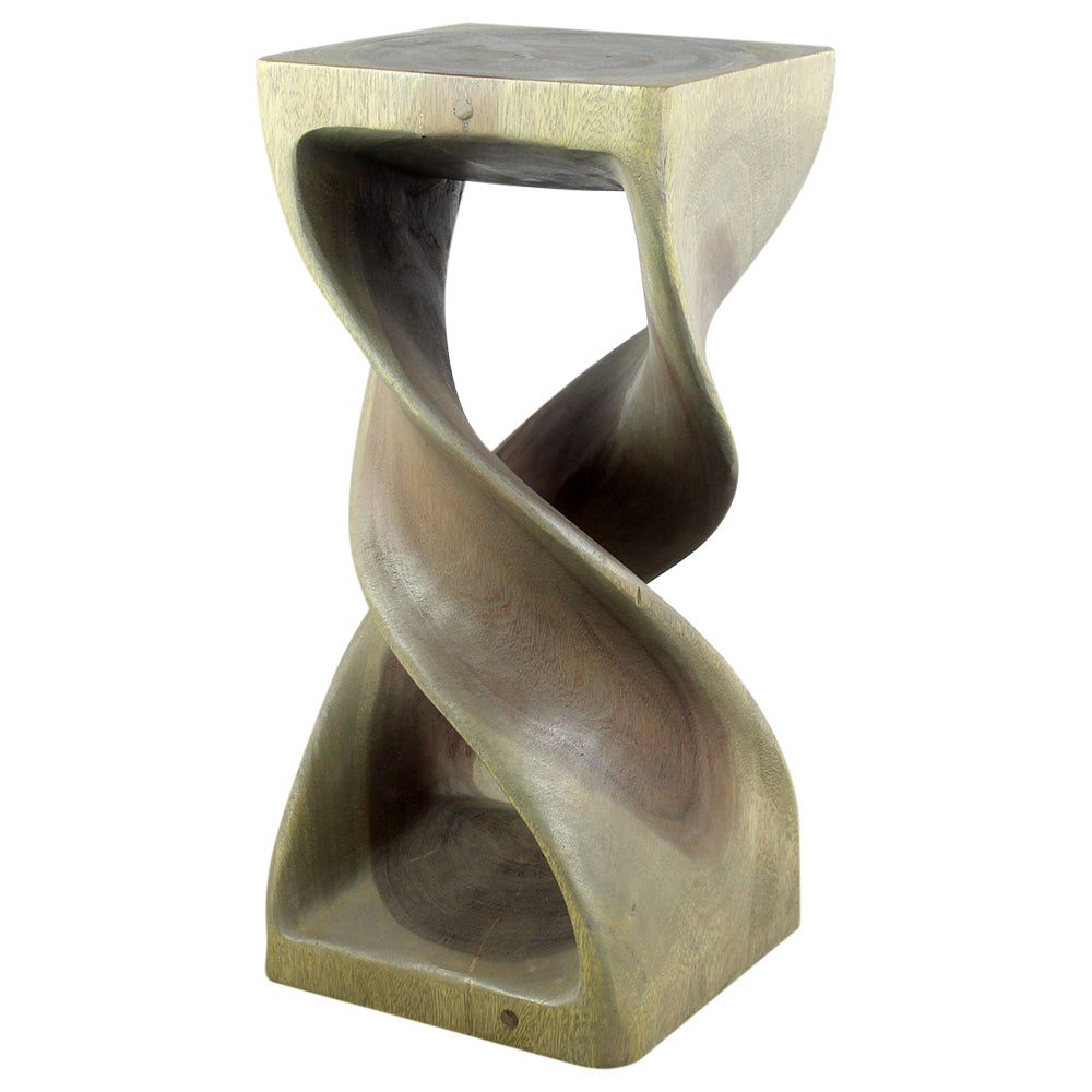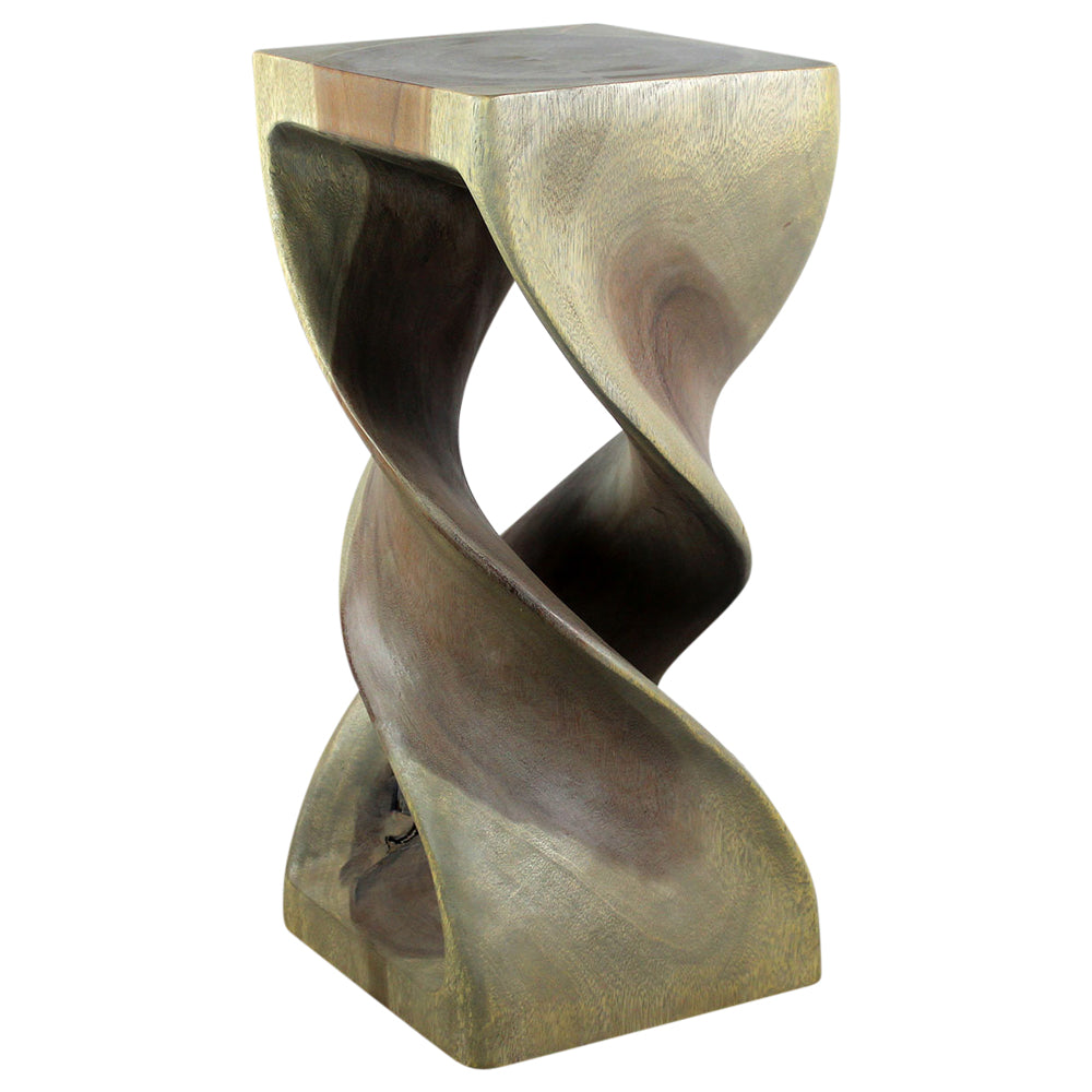 The 12 inch square by 26 inch high Double Twist stool is a visual delight in any setting. Use as a bar or kitchen counter stool, food safe finish that is water resistant. Its graceful one-quarter turns will add a sense of serenity and beauty to your home. This one-of-a-kind piece can be appreciated from any angle. Alternately use it as an end table, display stand or stool for last-minute extra seating. Two together can serve as a striking coffee table. At 12 inches square and 26 inches high