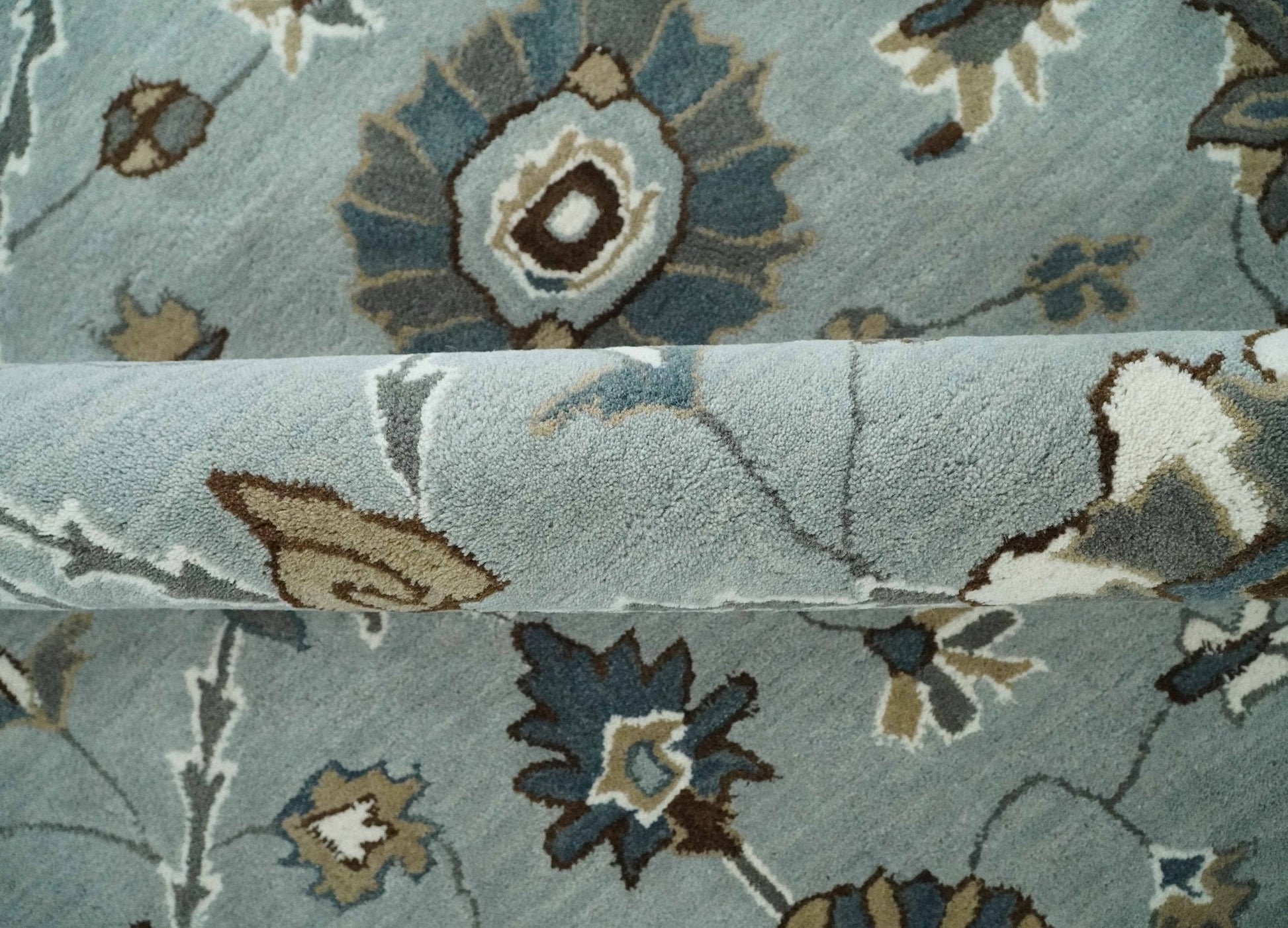 Light Blue, Beige and Gray Traditional Oriental Oushak Hand Tufted Custom Made wool Area Rug
