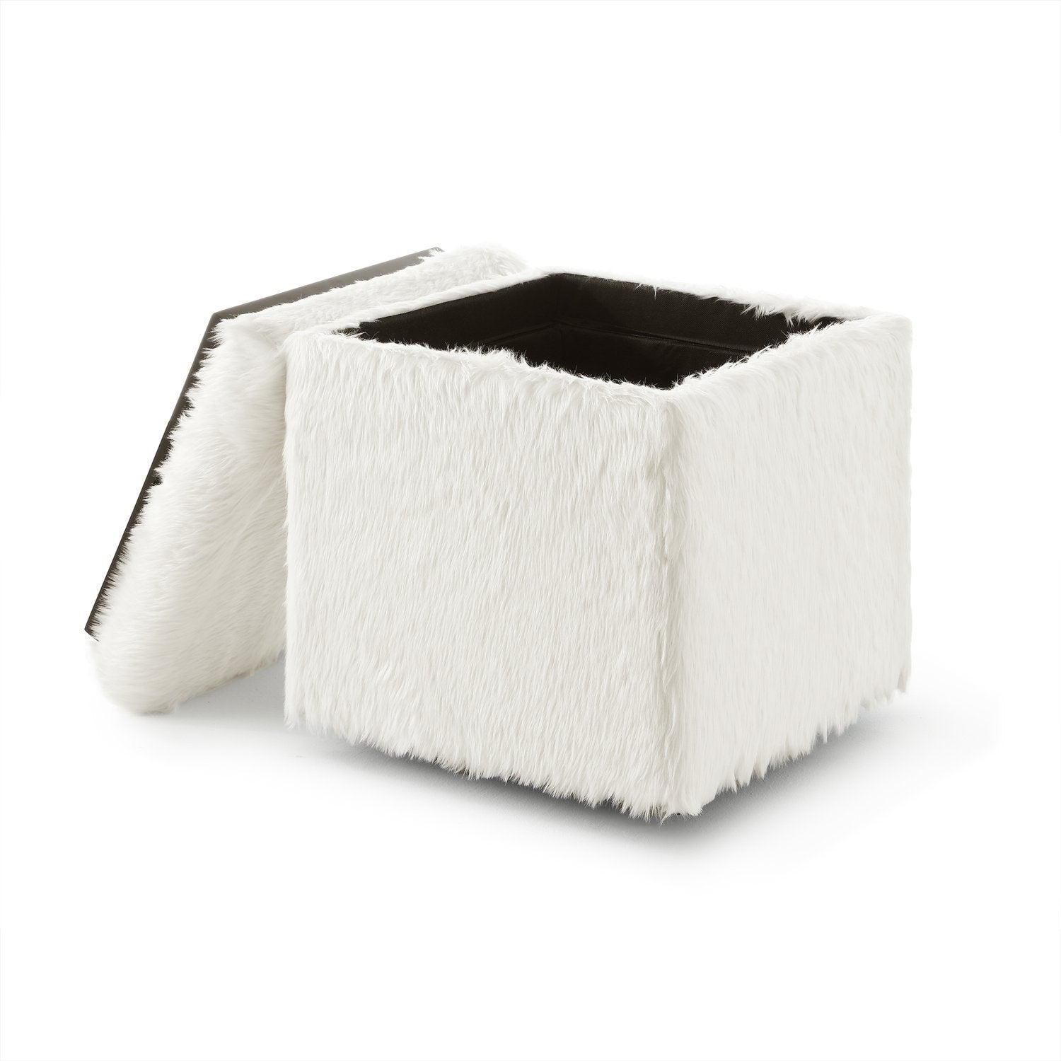 Our faux fur storage ottoman adds a retro and groovy touch to your living room, bedroom or entryway. Featuring adorable shag fur, this accent piece can be mixed and matched, and provides not only dual functionality but also a focal point of style and flair that seamlessly incorporates your main decor to create an inviting and comfortable atmosphere to come home to. This multipurpose piece with reversible lid can be an ottoman or coffee table, sitting in your living room, a comfy foot stool in your bedroom or just an extra seat for guests. Use this piece on its own or as a pair to make a statement in any room. A convenient hidden storage compartment gives you an extra space and helps you to keep books, magazines and other novelties tucked away under lift off top. If you live in a small apartment, storage ottoman is designed especially for you.