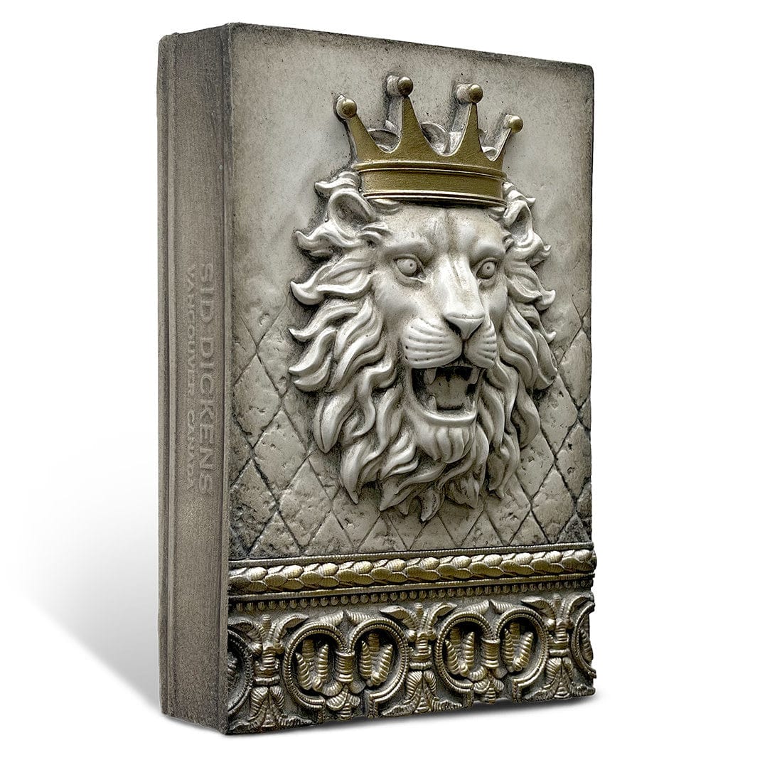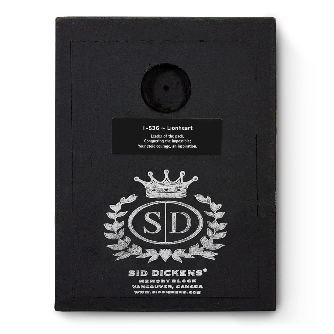 Sid Dickens is celebrated for his intricate and detailed Memory Blocks, and the Lionheart is no exception. The raised lion's head, adorned with a crown, is set against a textured background, showcasing the craftsmanship and attention to detail that Sid Dickens is known for. The back of the block features the Sid Dickens logo and the inspirational message: "Leader of the pack. Conquering the impossible; Your stoic courage, an inspiration."