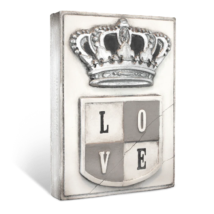 Handcrafted with meticulous attention to detail, this Memory Block features a regal crown atop a shield with the word "LOVE" artistically displayed. The intricate design and high-quality materials make it a standout piece in any collection.
